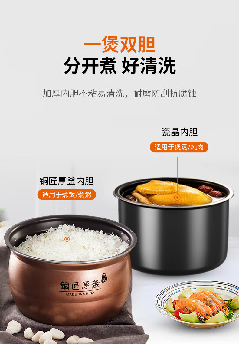 九阳(Joyoung)5L智能家用4-5人一锅双胆多功能电压力锅压力煲铜匠大火营养煮高压锅预约定时Y-50C82 Y-50C82/台
