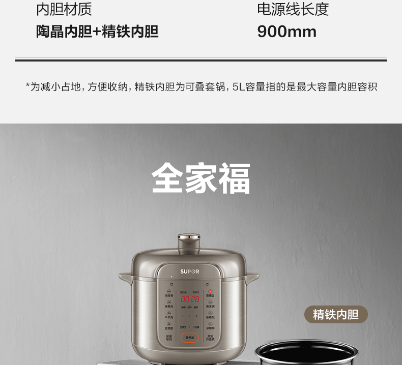 家用电器  > 厨房小电  > 电压力锅  >  苏泊尔/SUPOR  >  苏泊尔电压力锅5L全自动智能预约家用煲汤多功能面板易清洁双内胆压力锅电饭煲高压锅3-6人SY-50YC16 SY-50YC16/个