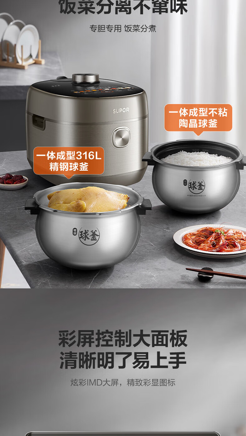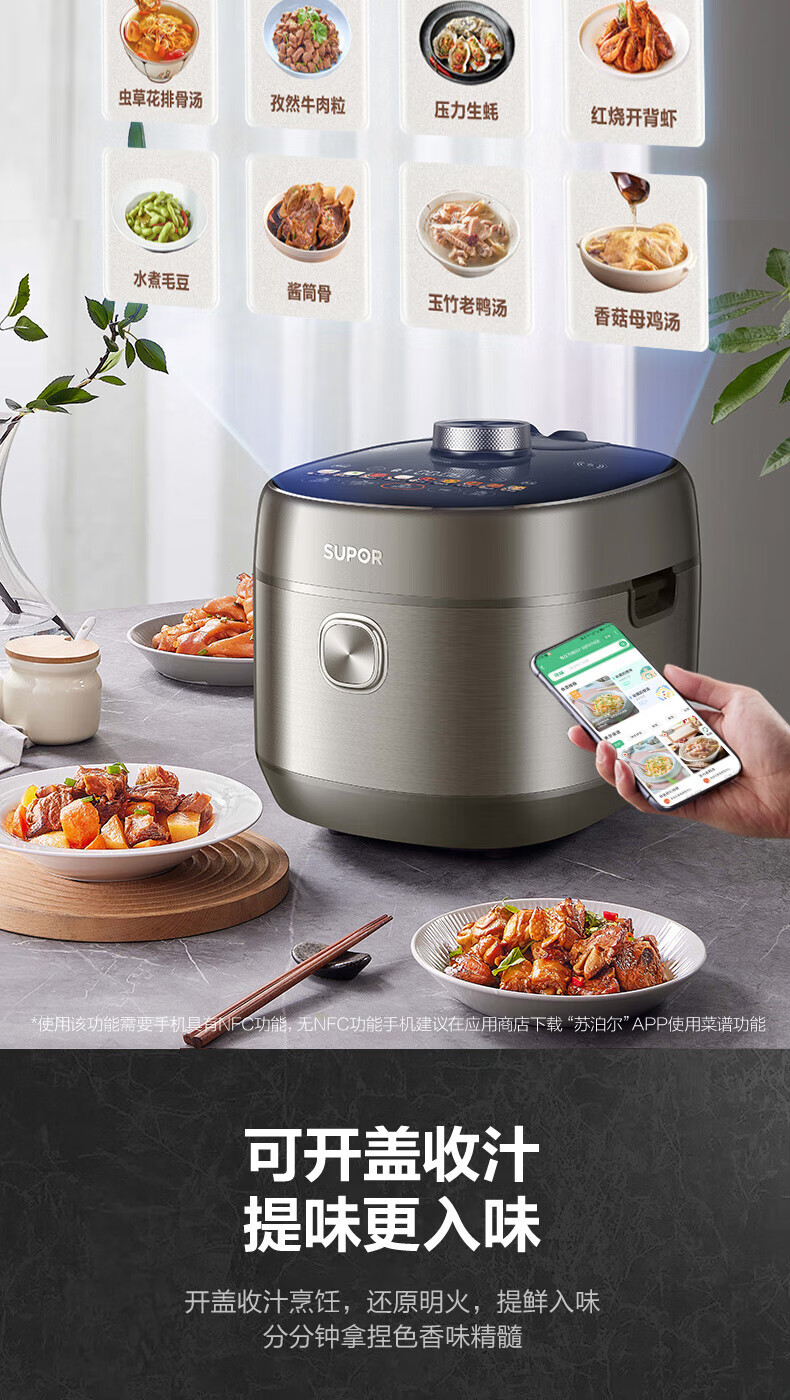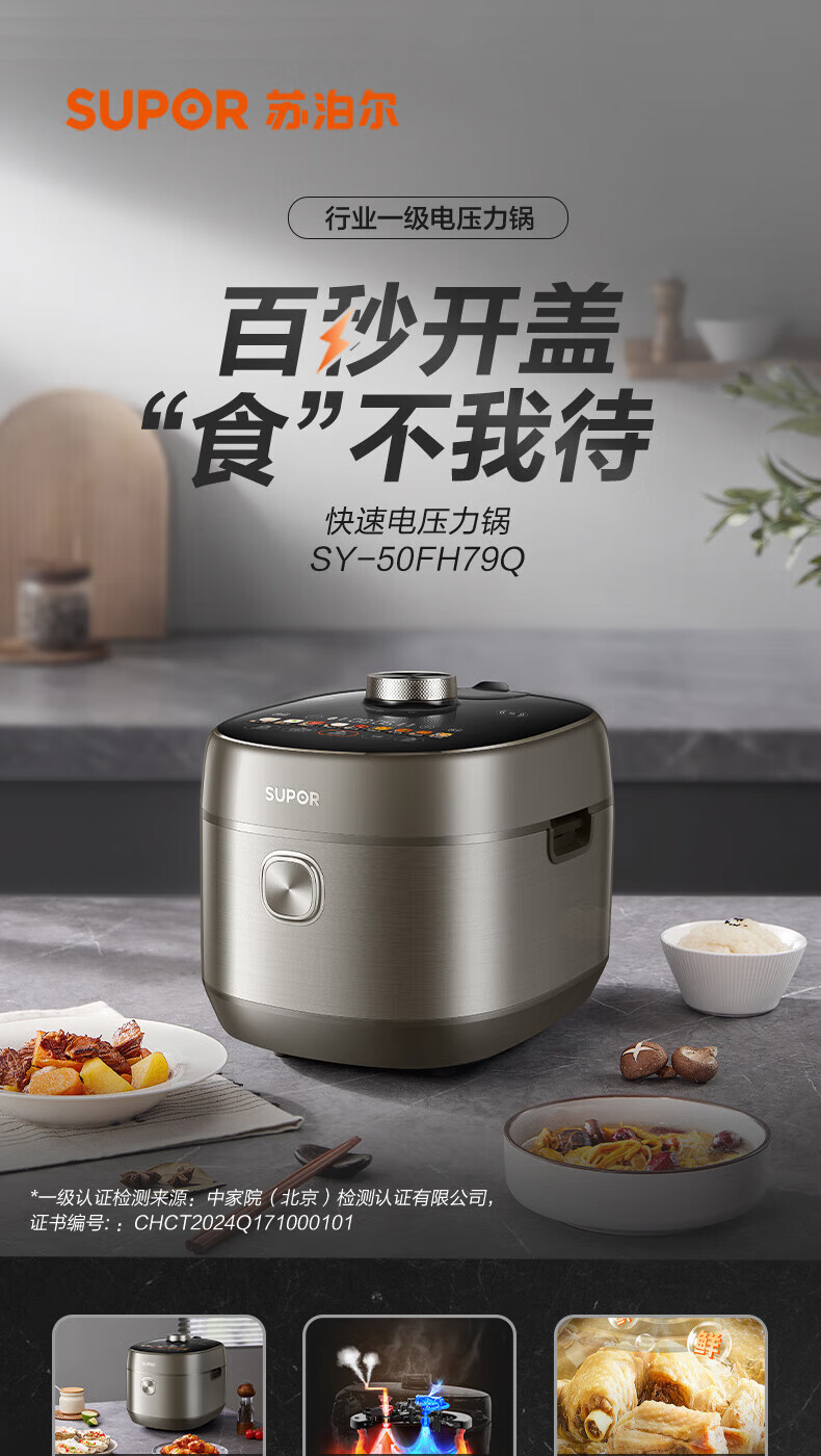 家用电器  > 厨房小电  > 电压力锅  >  苏泊尔/SUPOR  >  苏泊尔(SUPOR)快排100系列电压力锅5L 112kpa 鲜呼吸IH加热 2200W精钢球釜4-6人家用 SY-50FH79Q SY-50FH79Q/个