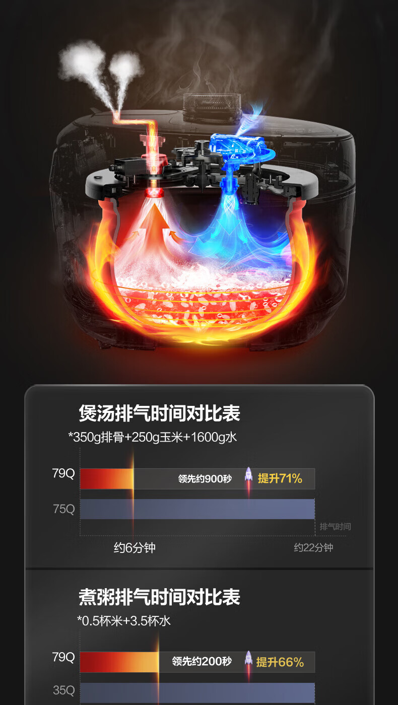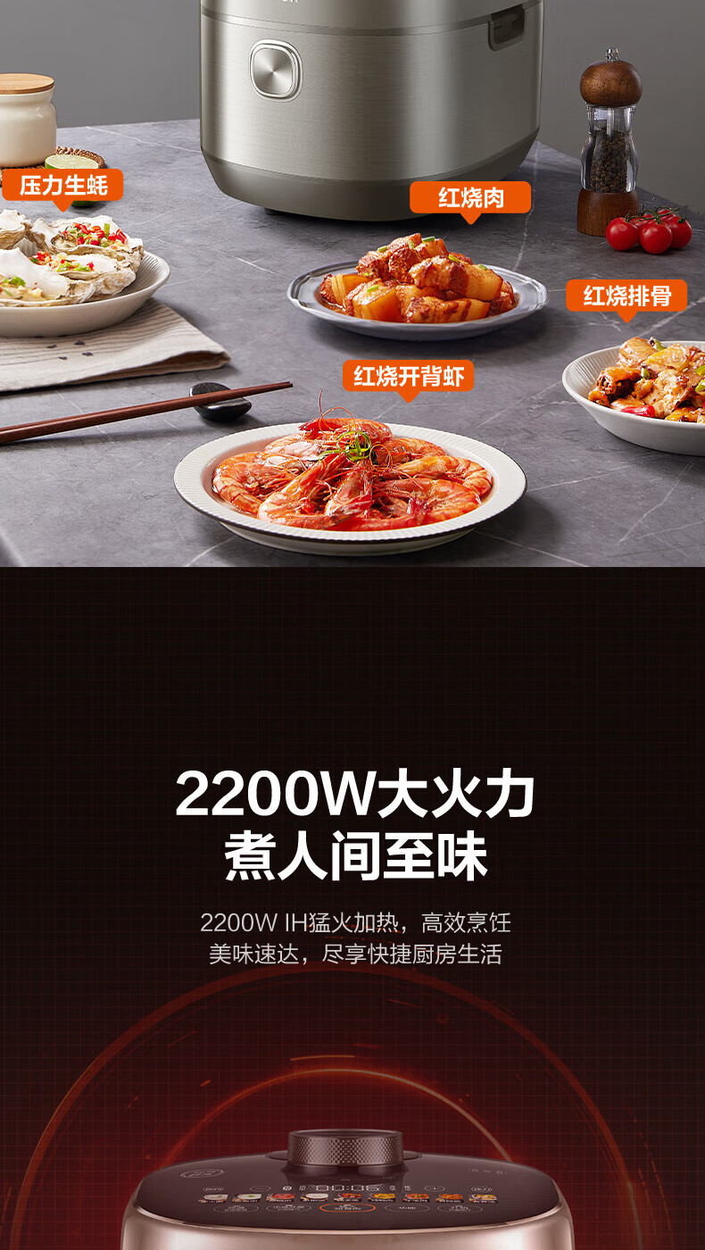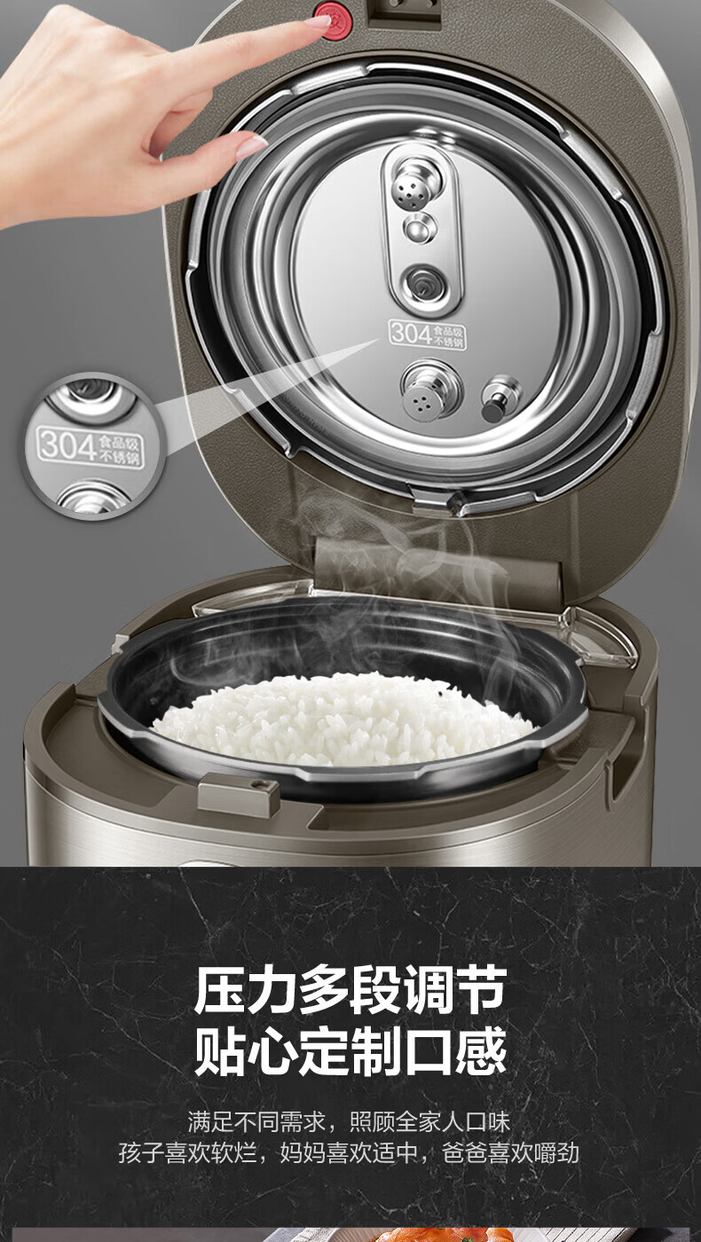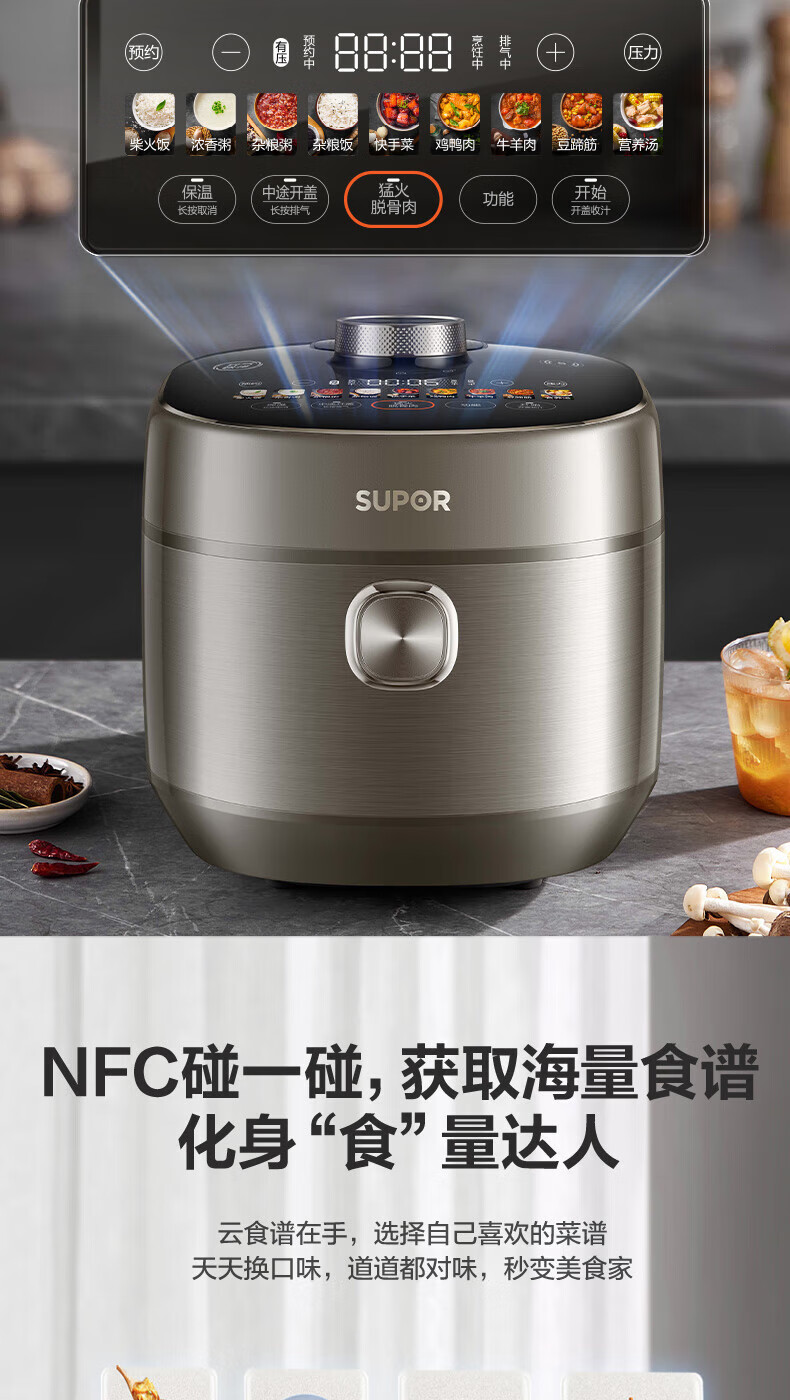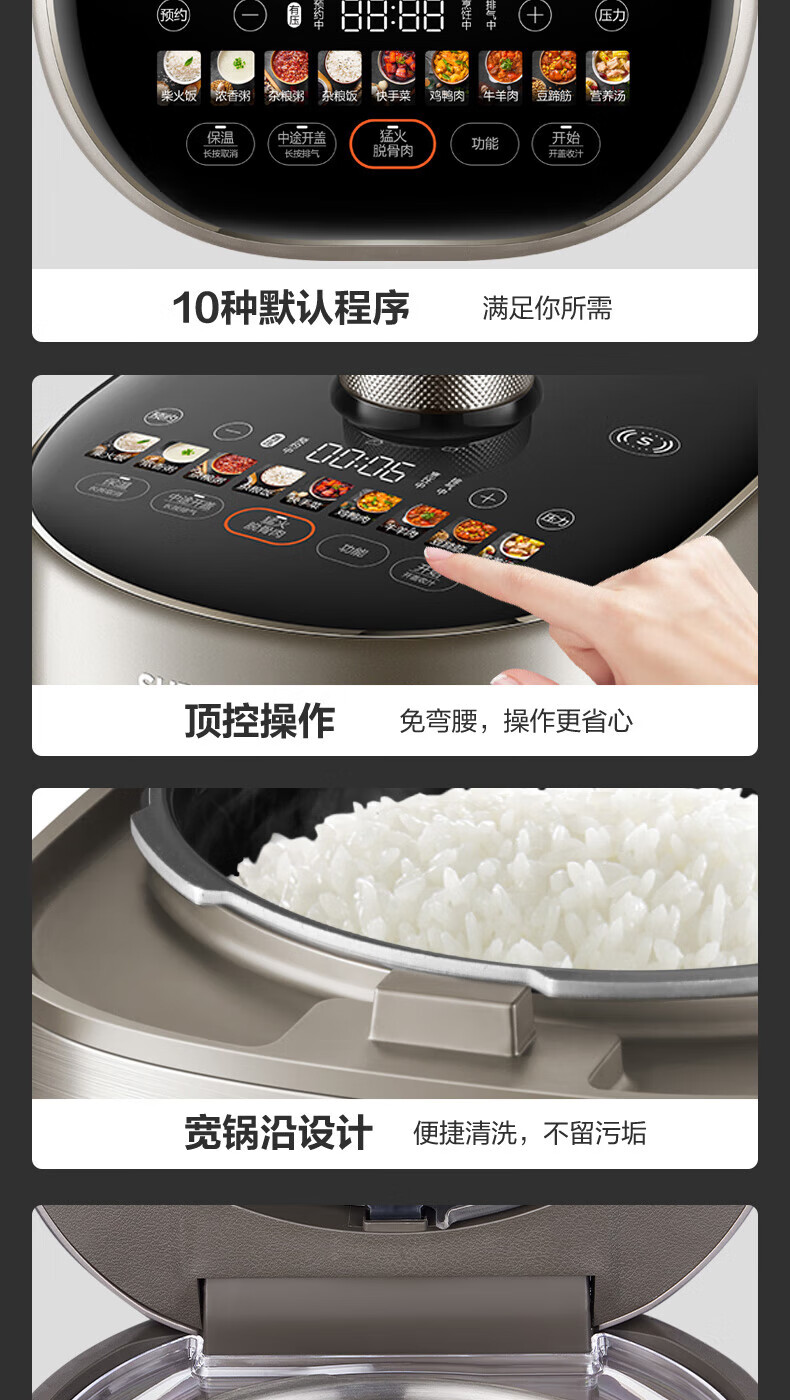 商品名称: 苏泊尔(SUPOR)快排100系列电压力锅5L 112kpa 鲜呼吸IH加热 2200W精钢球釜4-6人家用 SY-50FH79Q SY-50FH79Q/个