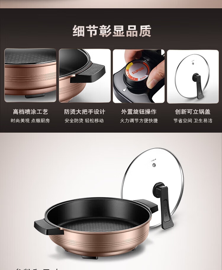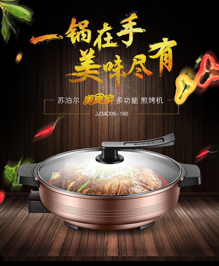 家用电器  > 厨房小电  > 多功能锅  >  苏泊尔/SUPOR  >  苏泊尔电饼铛煎烤机6L大容量家用多用途电火锅 火力可调JJ34D05-180 JJ34D05-180/个