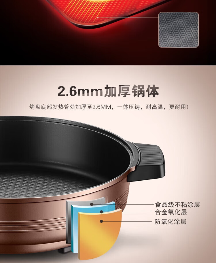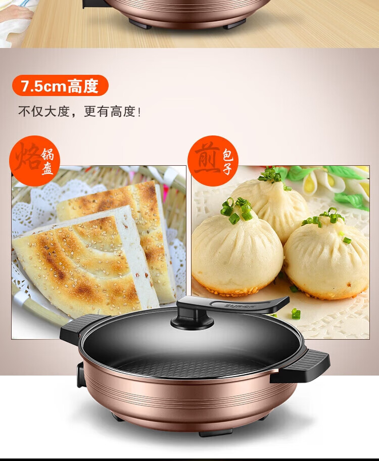 • 商品名称:苏泊尔电饼铛煎烤机6L大容量家用多用途电火锅 火力可调JJ34D05-180 JJ34D05-180/个