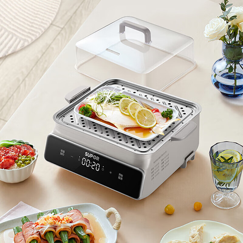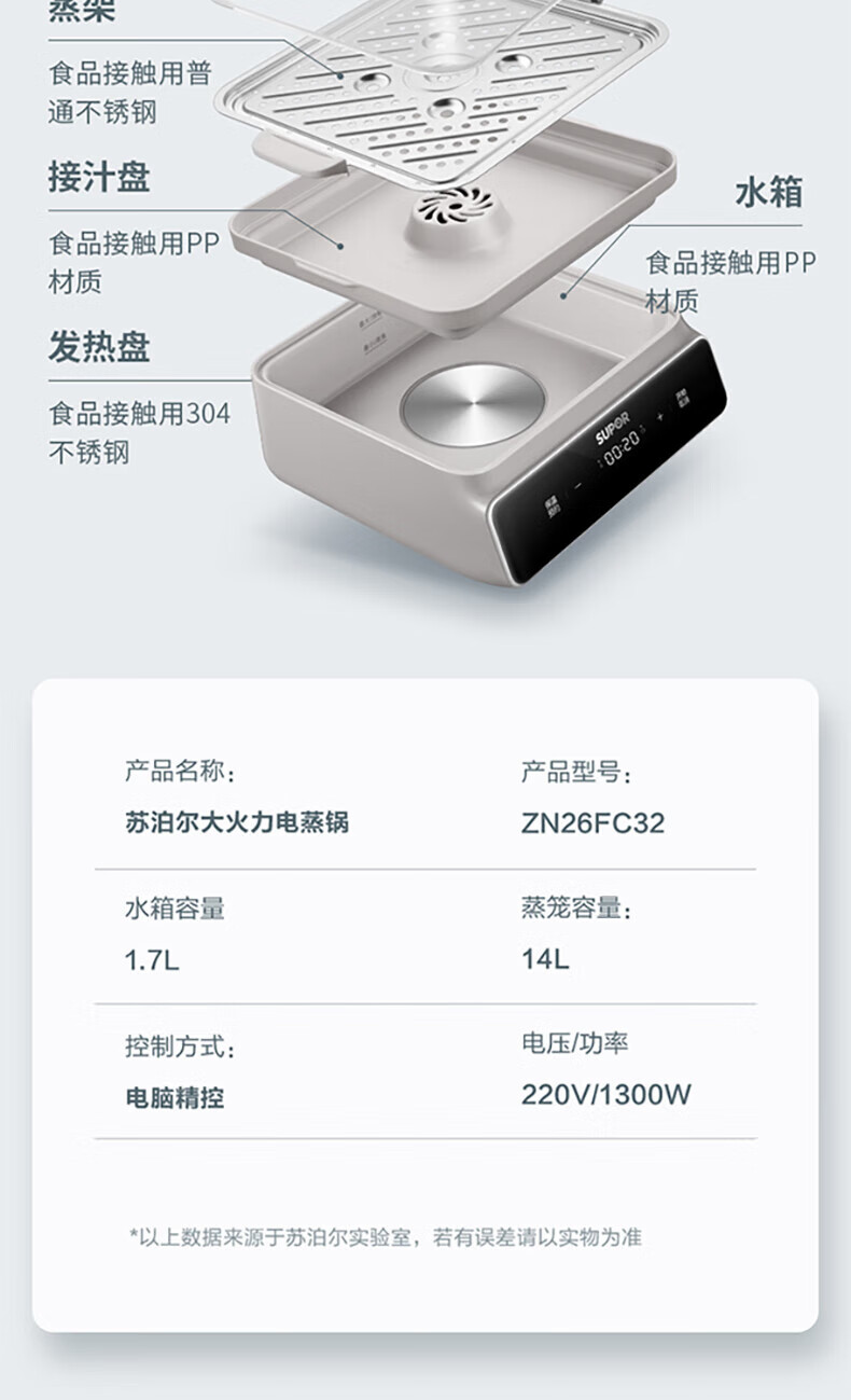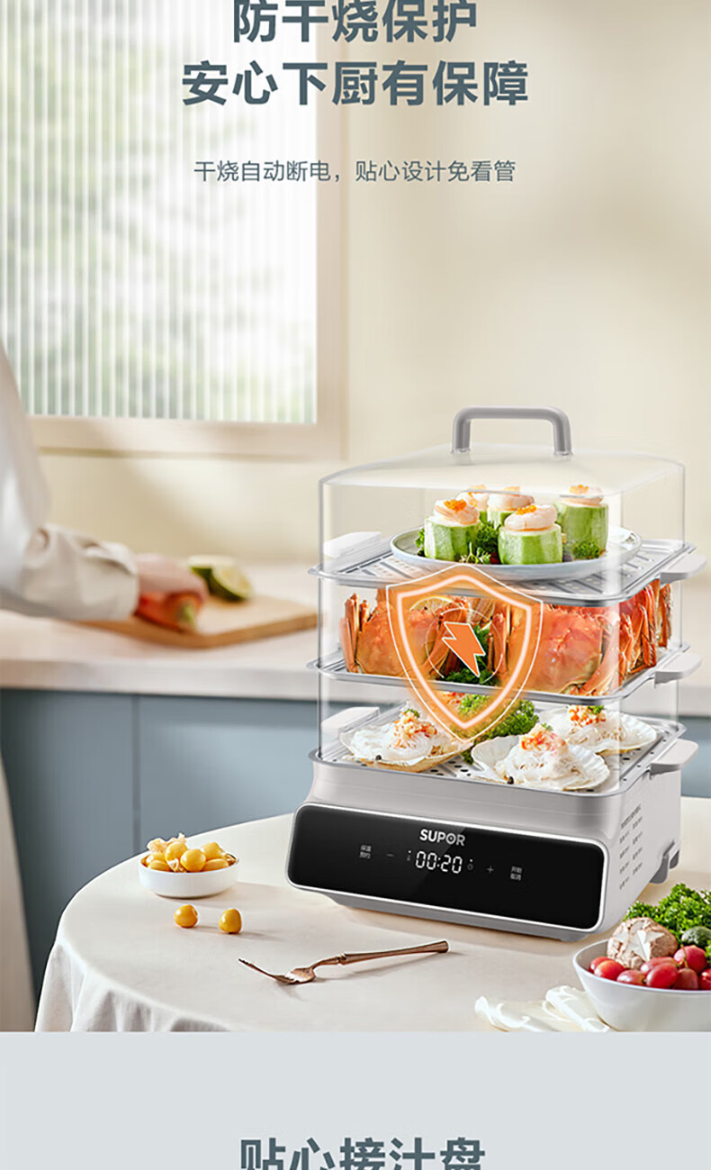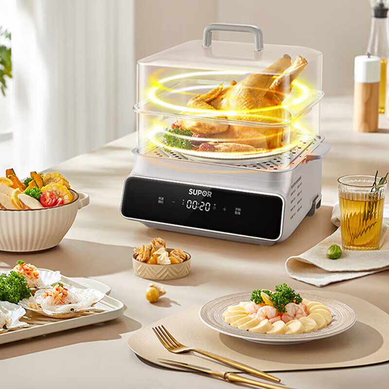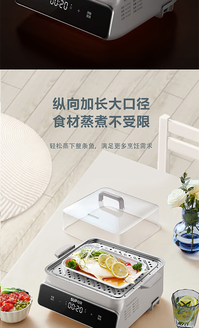• 商品名称:苏泊尔电蒸锅15.7L大容量家用多功能电蒸笼三层分体式可拆洗智能预约定时蒸锅带蒸盘蒸包子锅ZN26FC32 ZN26FC32/个