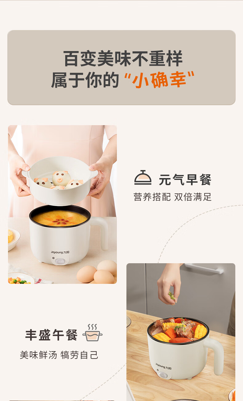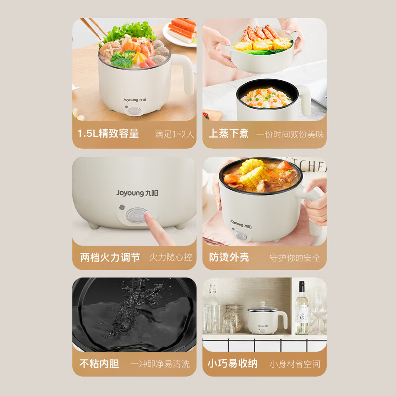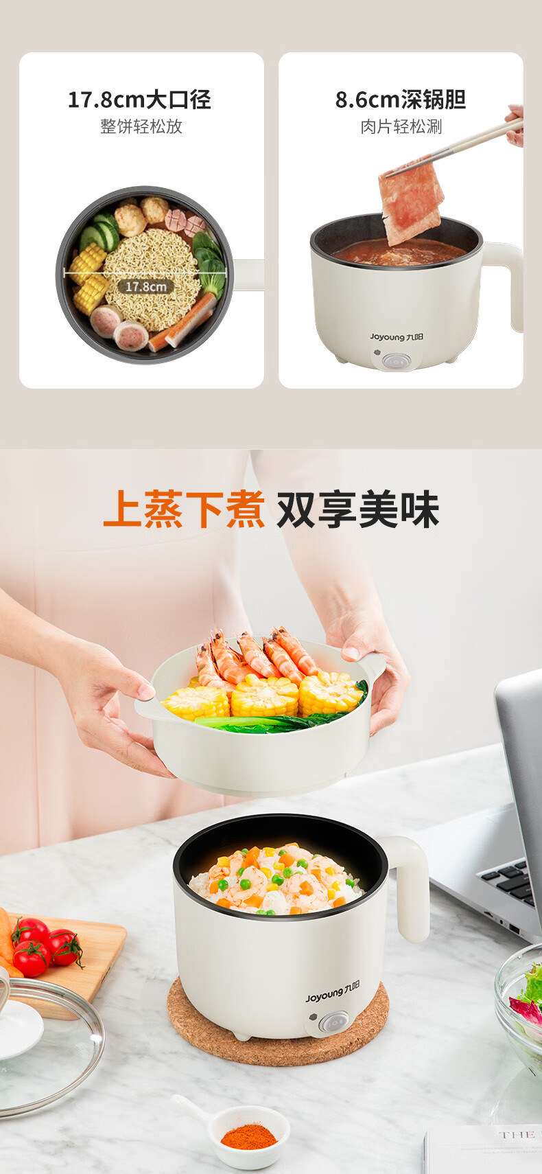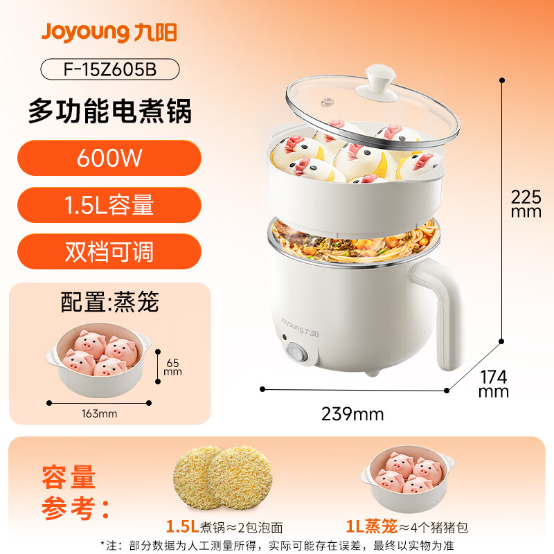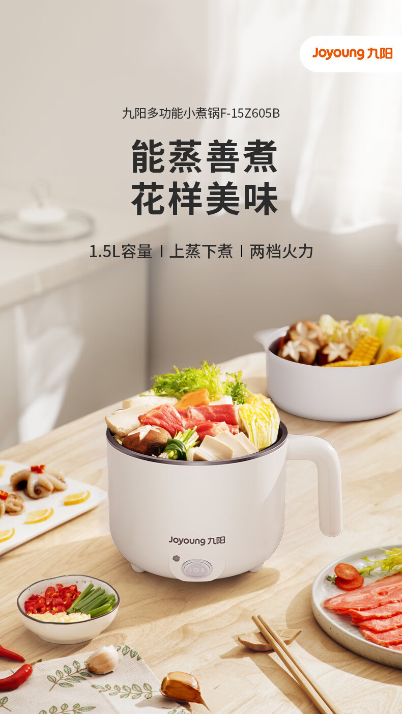 九阳(Joyoung)电煮锅小电锅宿舍小锅电蒸锅 学生寝室一体泡面小火锅多功能锅一人电火锅F-15Z605B F-15Z605B/台