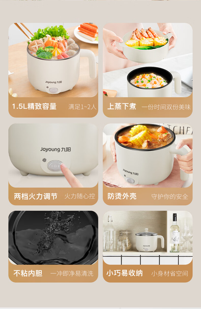 家用电器  > 厨房小电  > 多功能锅  >  九阳/Joyoung  >  九阳(Joyoung)电煮锅小电锅宿舍小锅电蒸锅 学生寝室一体泡面小火锅多功能锅一人电火锅F-15Z605B F-15Z605B/台
