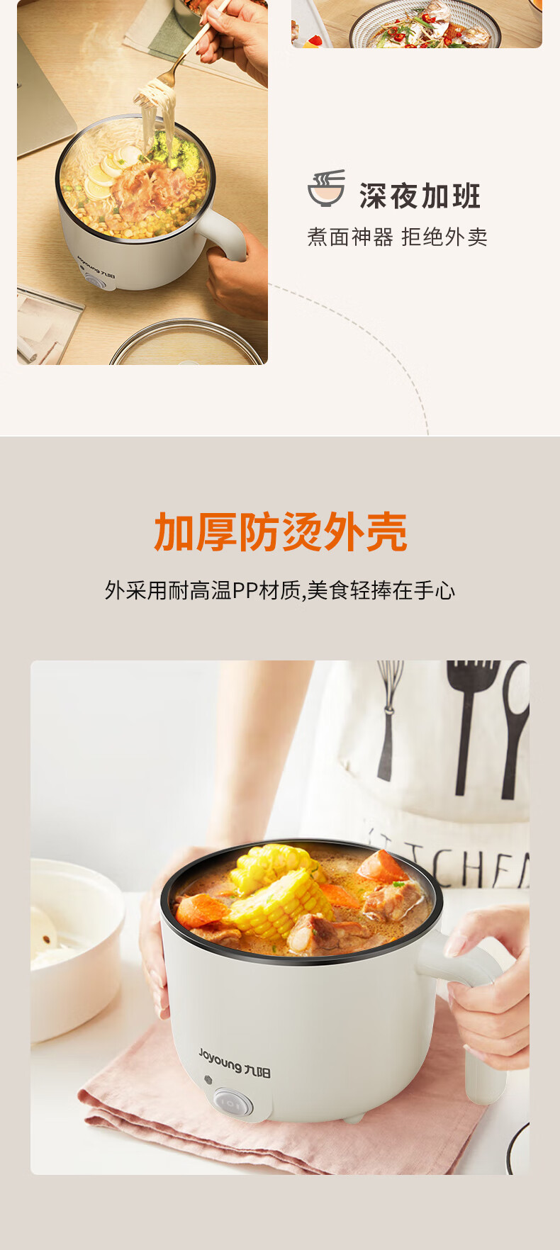 • 商品名称:九阳(Joyoung)电煮锅小电锅宿舍小锅电蒸锅 学生寝室一体泡面小火锅多功能锅一人电火锅F-15Z605B F-15Z605B/台