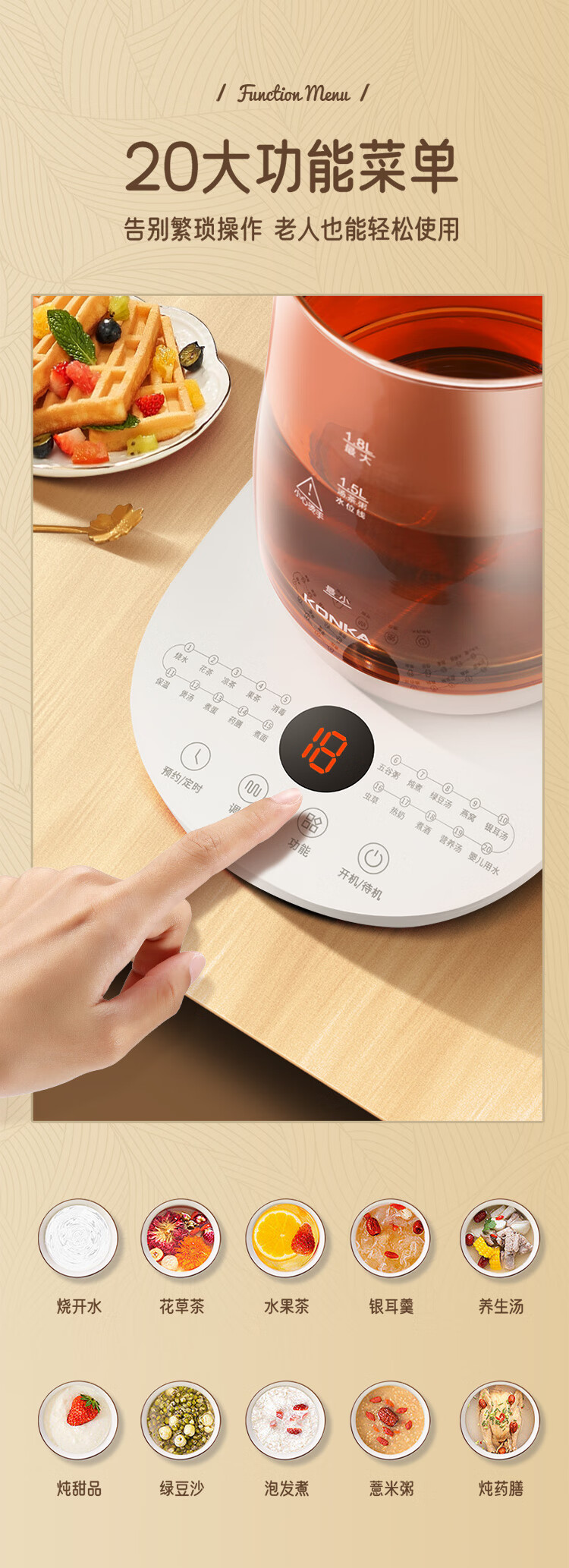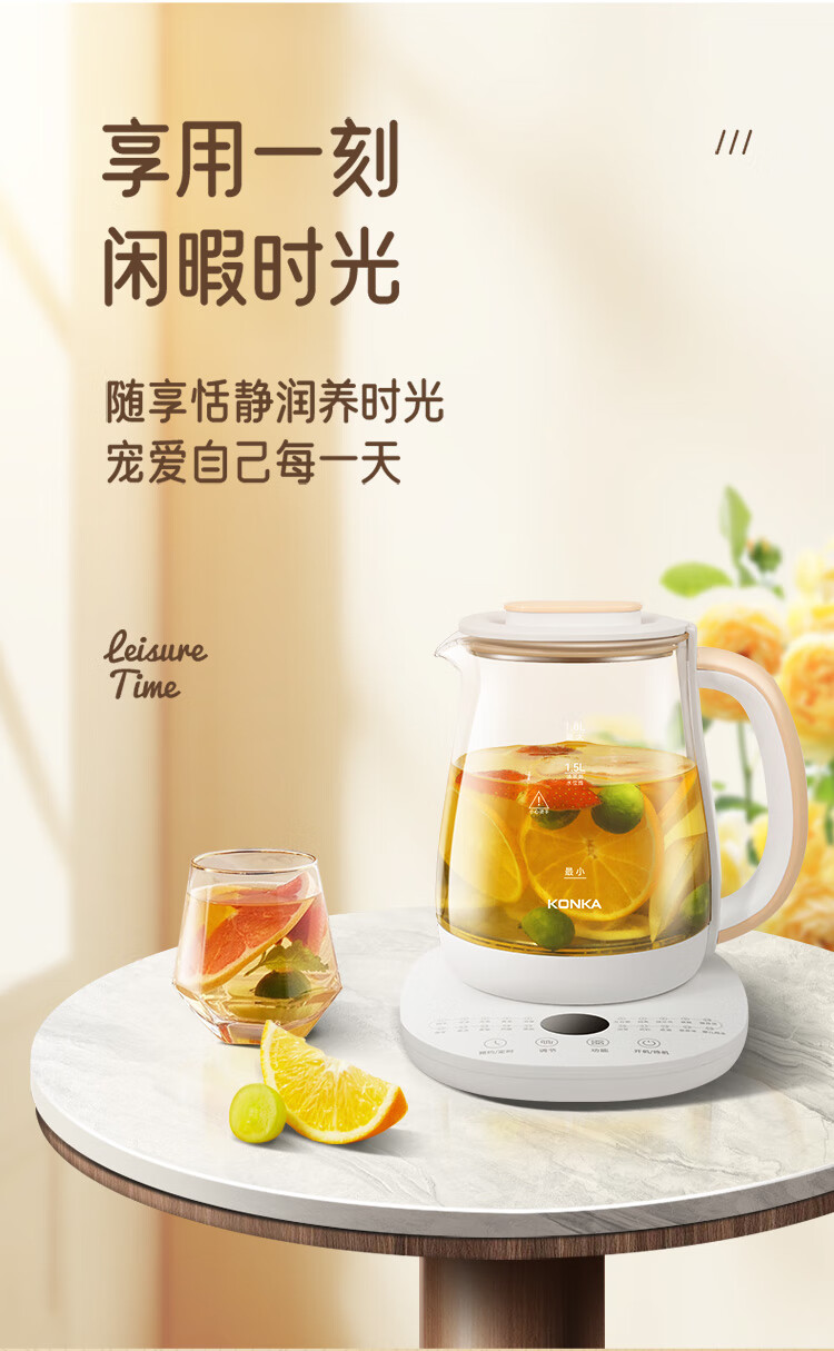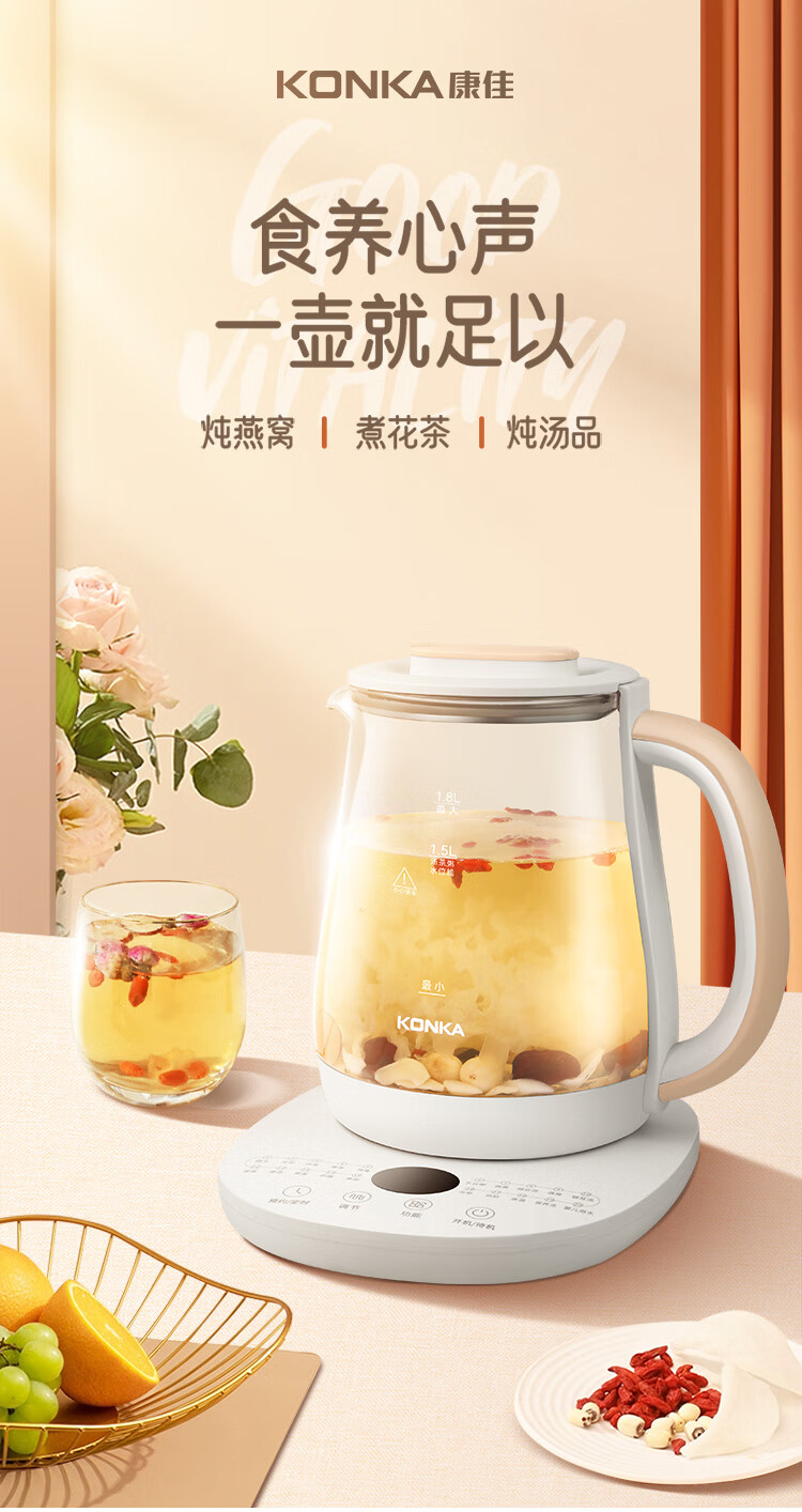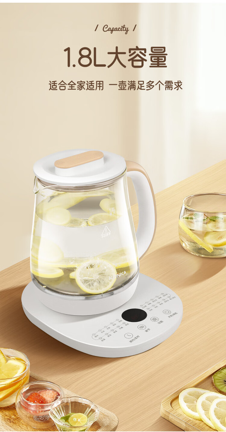 商品名称: 康佳(KONKA)养生壶KYSH-1806E 煮茶器 玻璃保温烧水壶 1.8L家用大容量 多功能煮花茶 电热水壶 KYSH-1810E/台