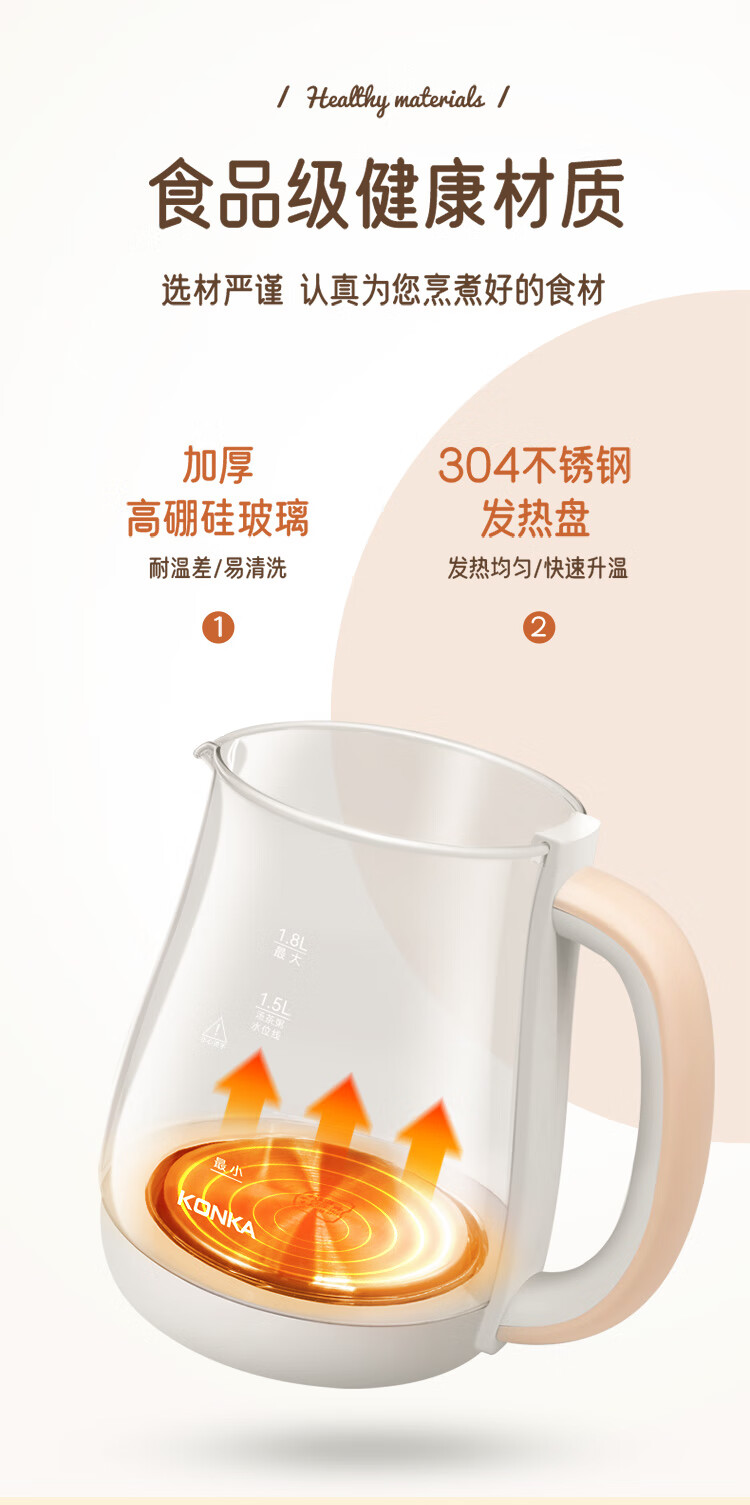 家用电器  > 厨房小电  > 养生壶  >  康佳/KONKA  >  康佳(KONKA)养生壶KYSH-1806E 煮茶器 玻璃保温烧水壶 1.8L家用大容量 多功能煮花茶 电热水壶 KYSH-1810E/台