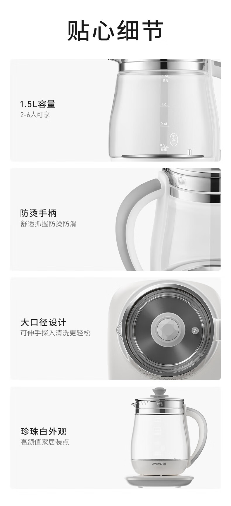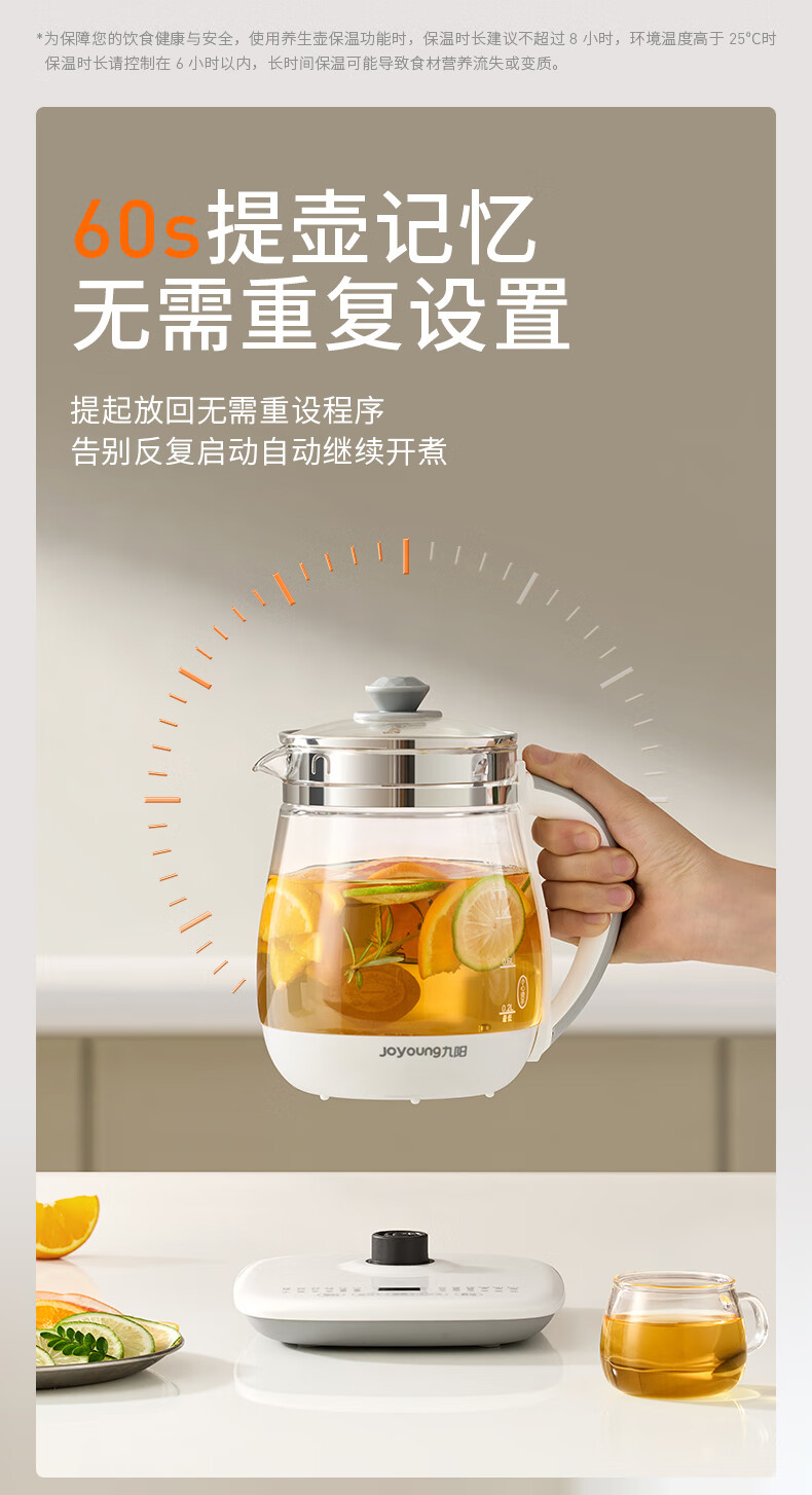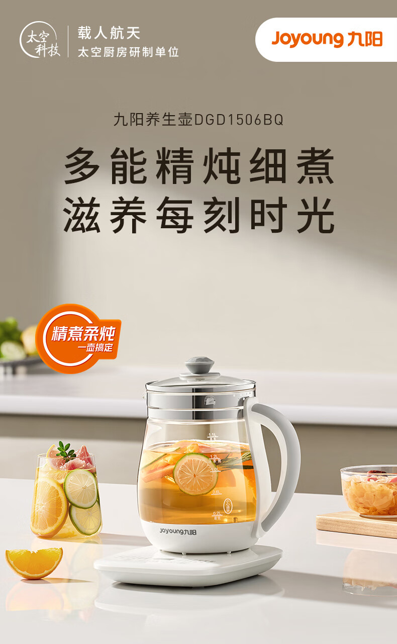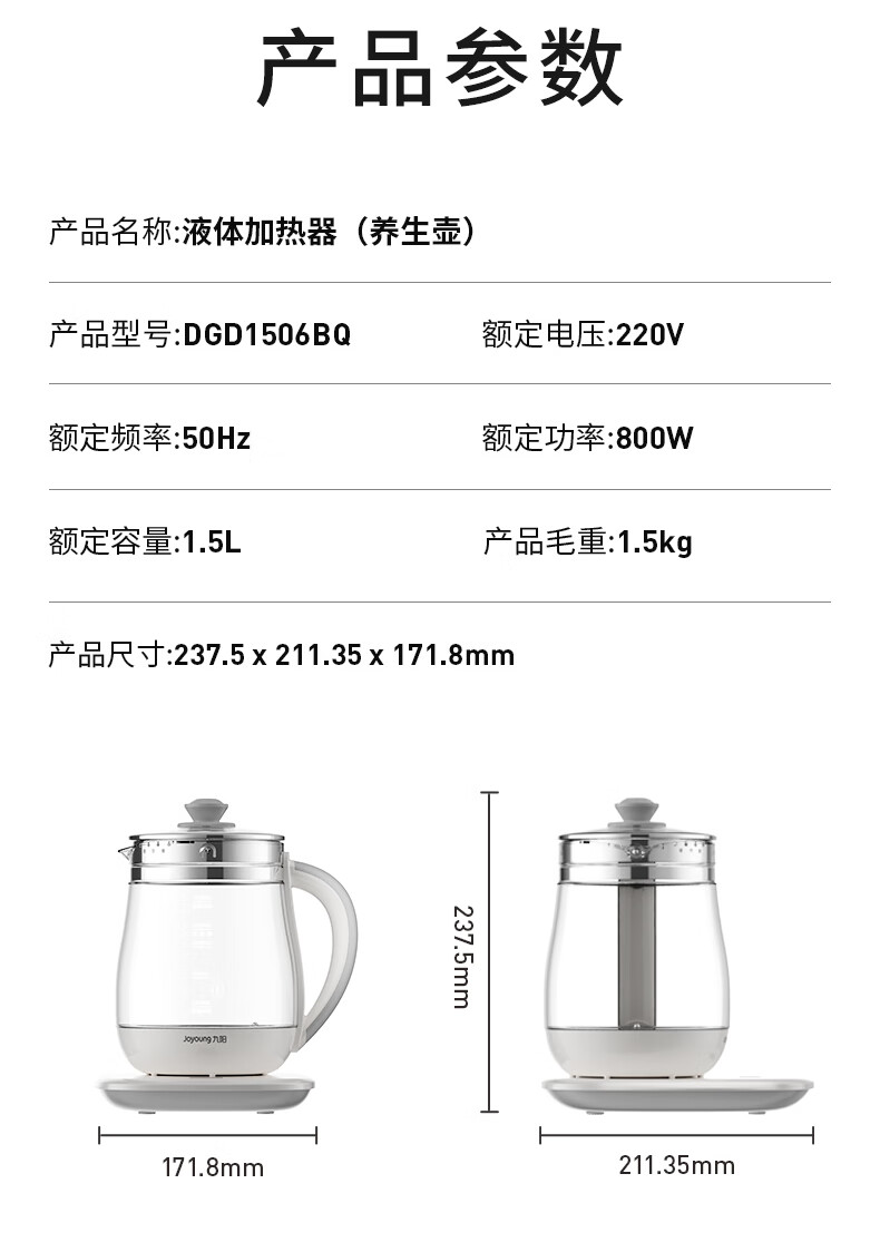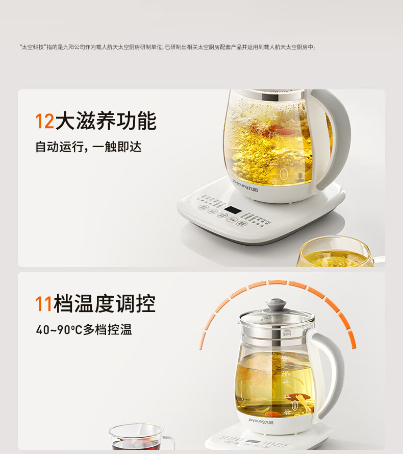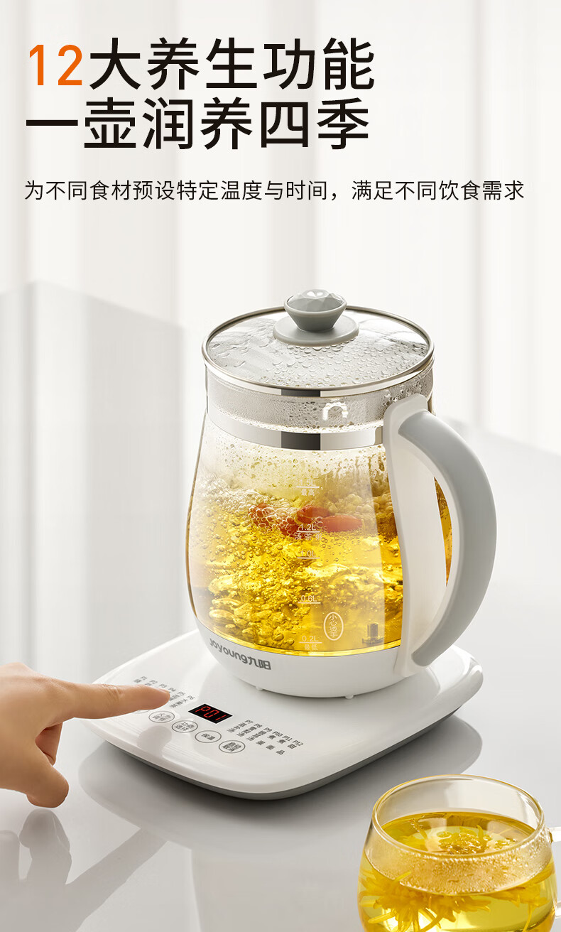 家用电器  > 厨房小电  > 养生壶  >  九阳/Joyoung  >  九阳(Joyoung)养生壶迷你玻璃花茶壶煮茶器 12大功能11档温度 0胶水恒温电热烧水壶1.5L 1506BQ DGD1506BQ/台