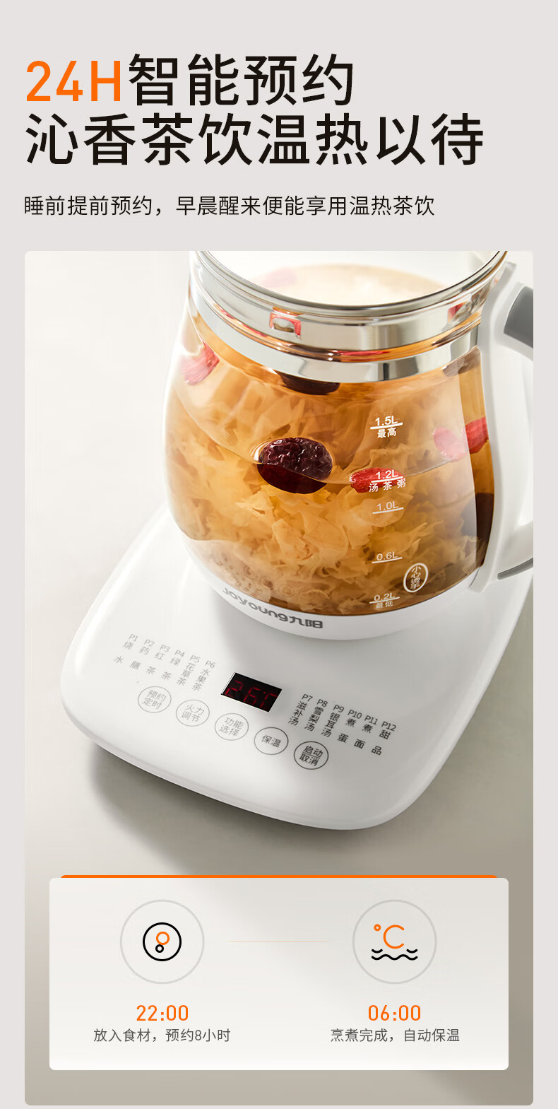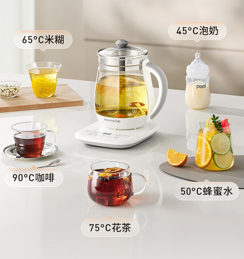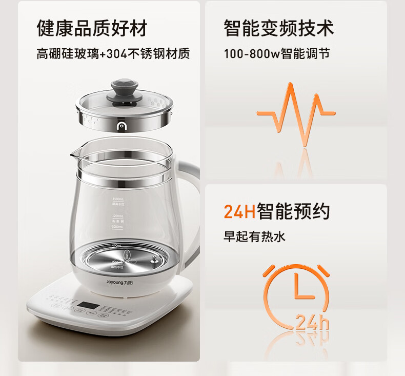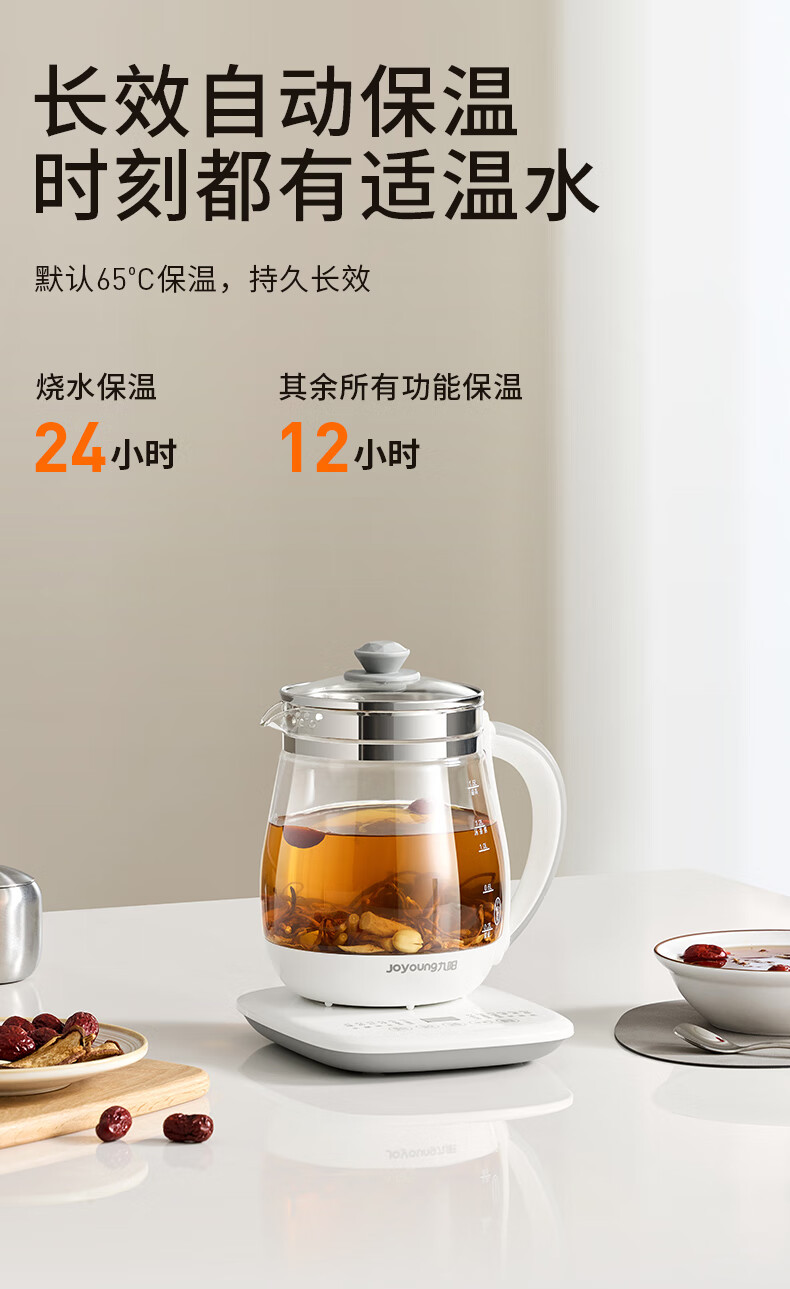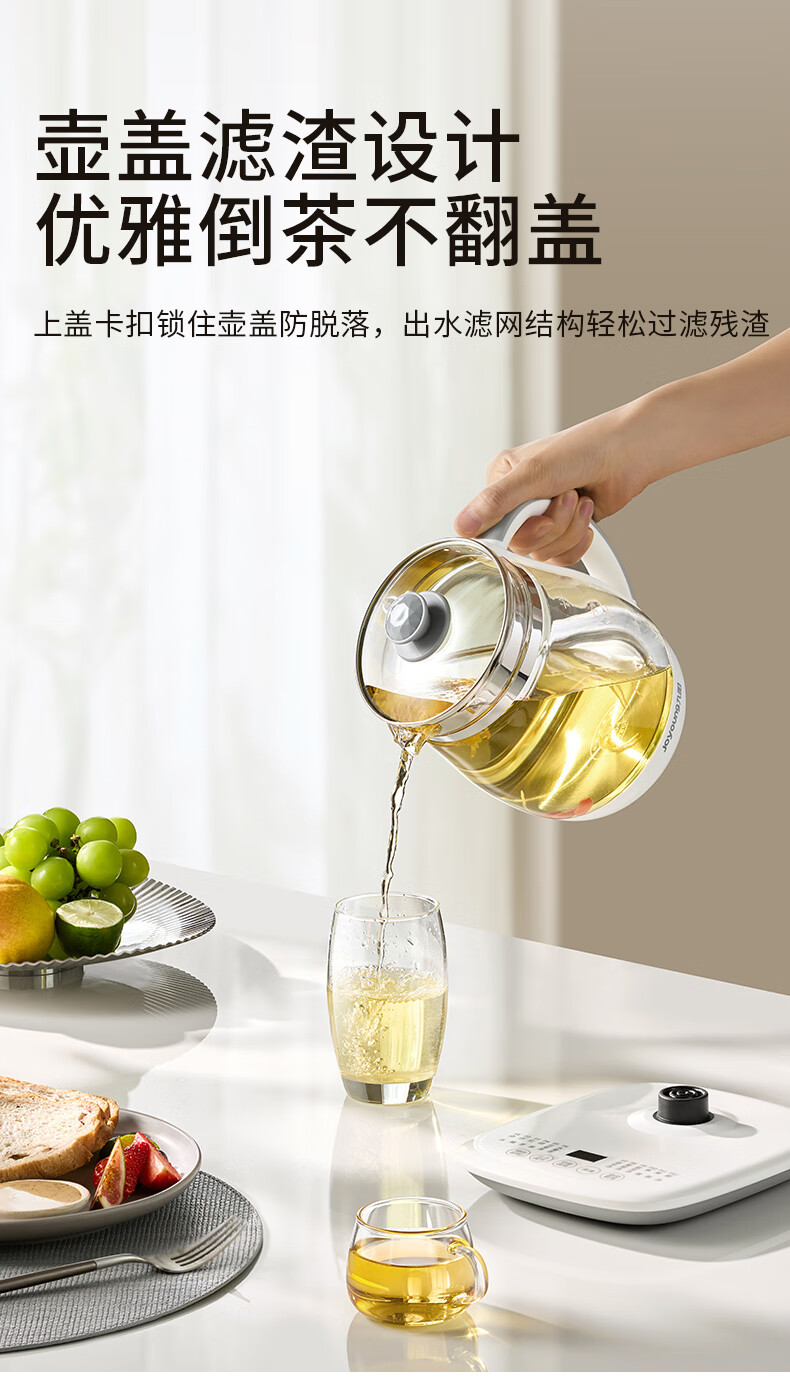 九阳(Joyoung)养生壶迷你玻璃花茶壶煮茶器 12大功能11档温度 0胶水恒温电热烧水壶1.5L 1506BQ DGD1506BQ/台