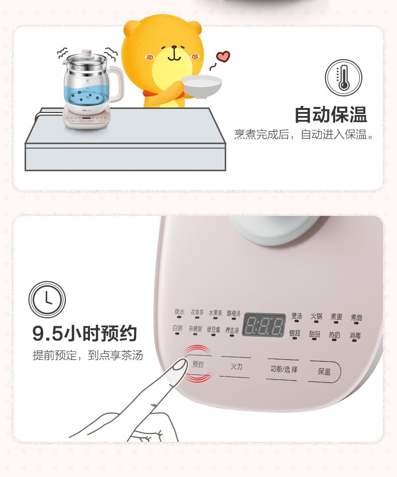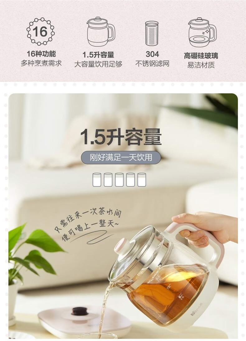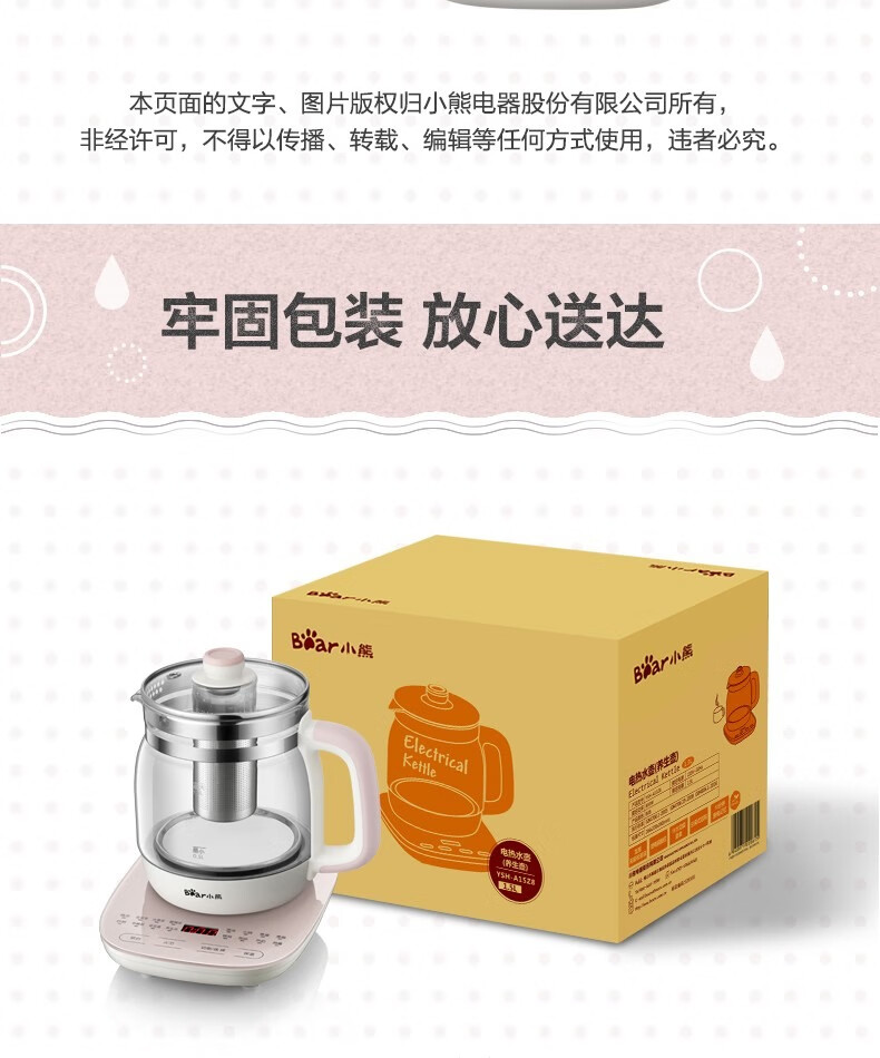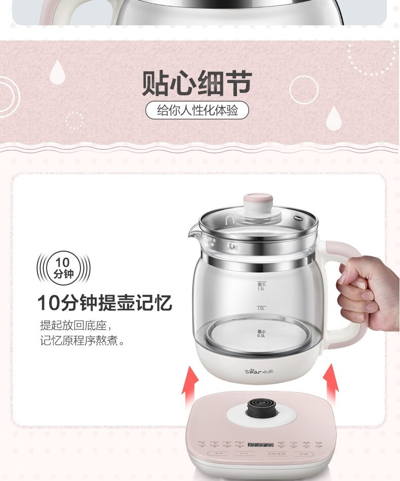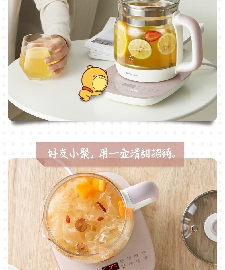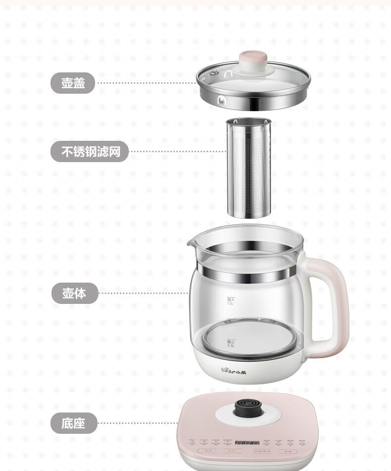 • 商品名称:小熊(Bear) 养生壶 煮茶器 煮茶壶电水壶烧水壶1.5L触屏玻璃花茶壶 YSH-A15Z8 触屏调控-钢化玻 YSH-A15Z8/个