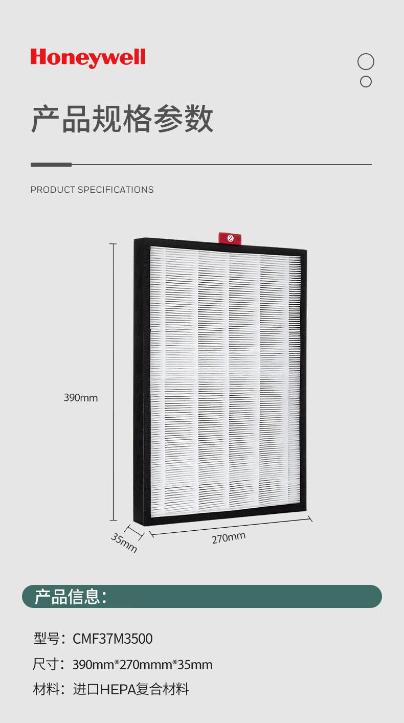 商品名称: 霍尼韦尔(Honeywell)空气净化器过滤网滤芯 分解甲醛复合滤网CMF37M3500适用KJ370F/KJ400F/KJ450F-Z21WS/KJ455F-Z21W CMF37M3500/个