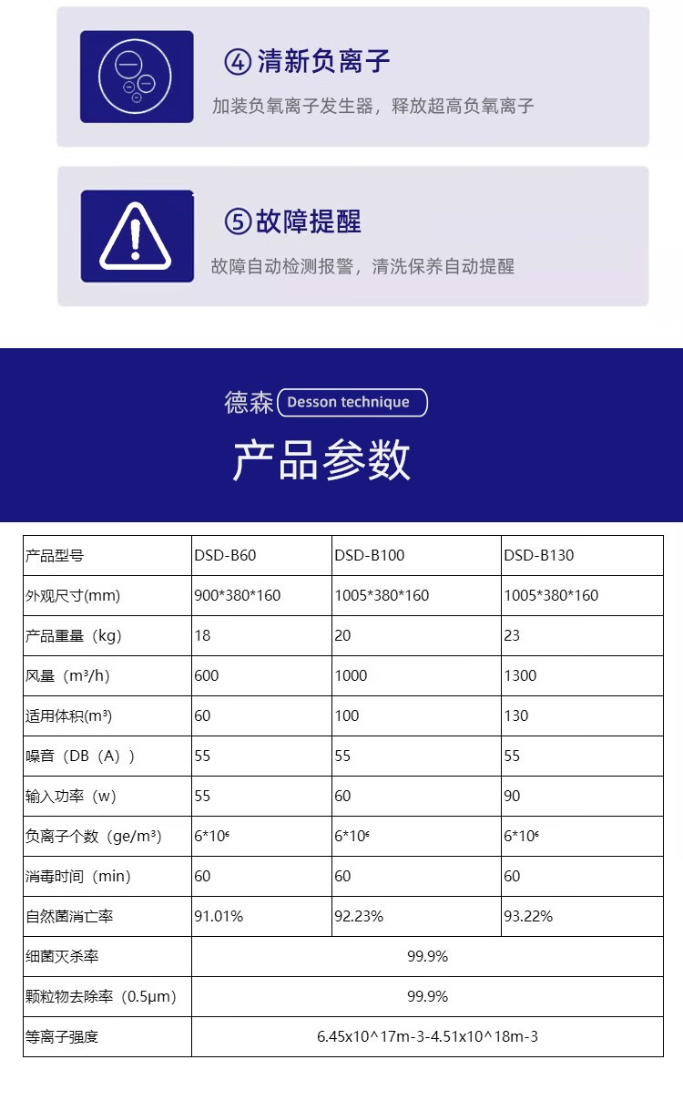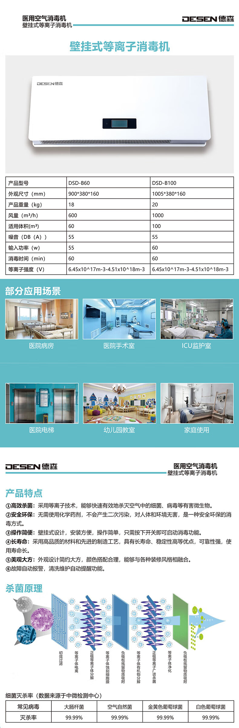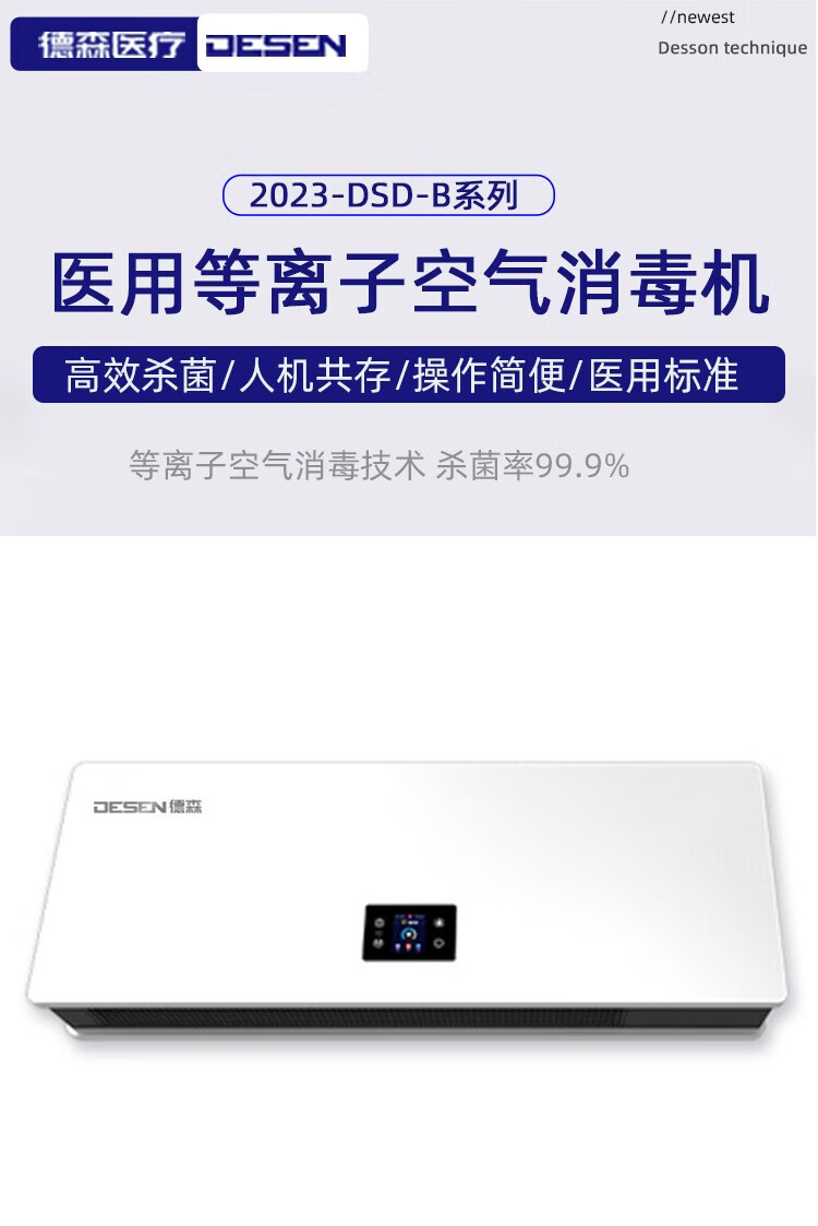 • 商品名称:德森医疗壁挂式等离子医用空气消毒机手术室杀菌医院诊所人机共存消毒器 DSD-B130【适用130立方米】 DSD-B130/台