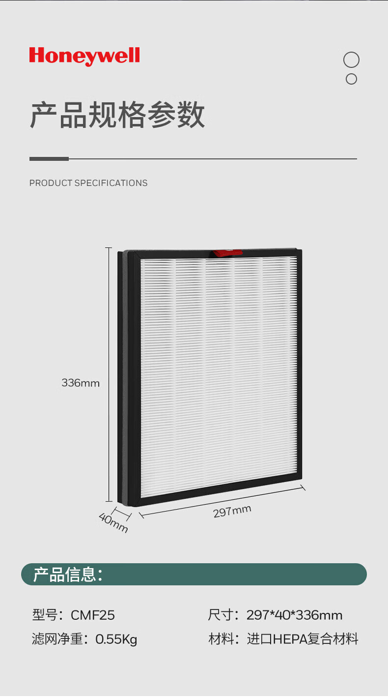 包装清单: 霍尼韦尔(Honeywell)空气净化器过滤网滤芯2号滤网适用于净化器KJ250F系列CMF25M