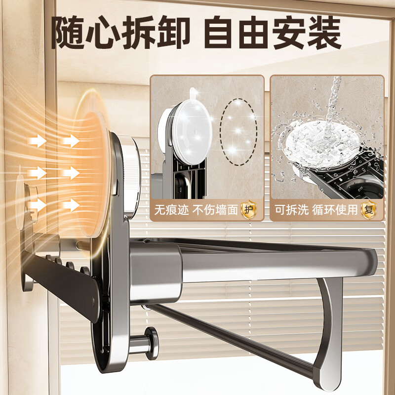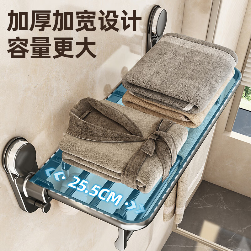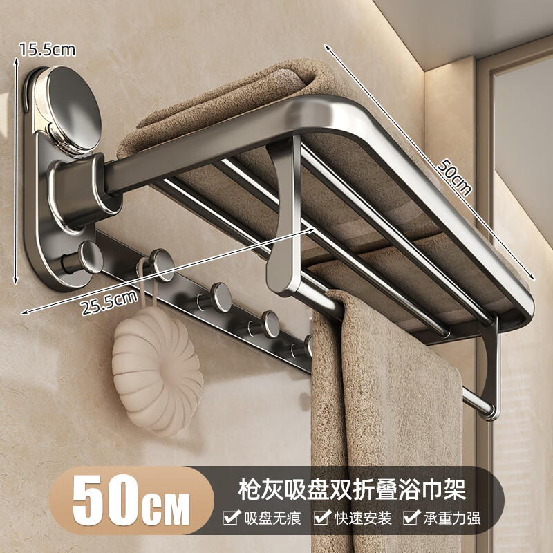 慕亚(MUYA)吸盘毛巾架卫生间免打孔浴巾架子浴室置物架一体厕所收纳挂杆 吸盘单折叠挂杆浴巾架带排钩50cm-枪灰色/件