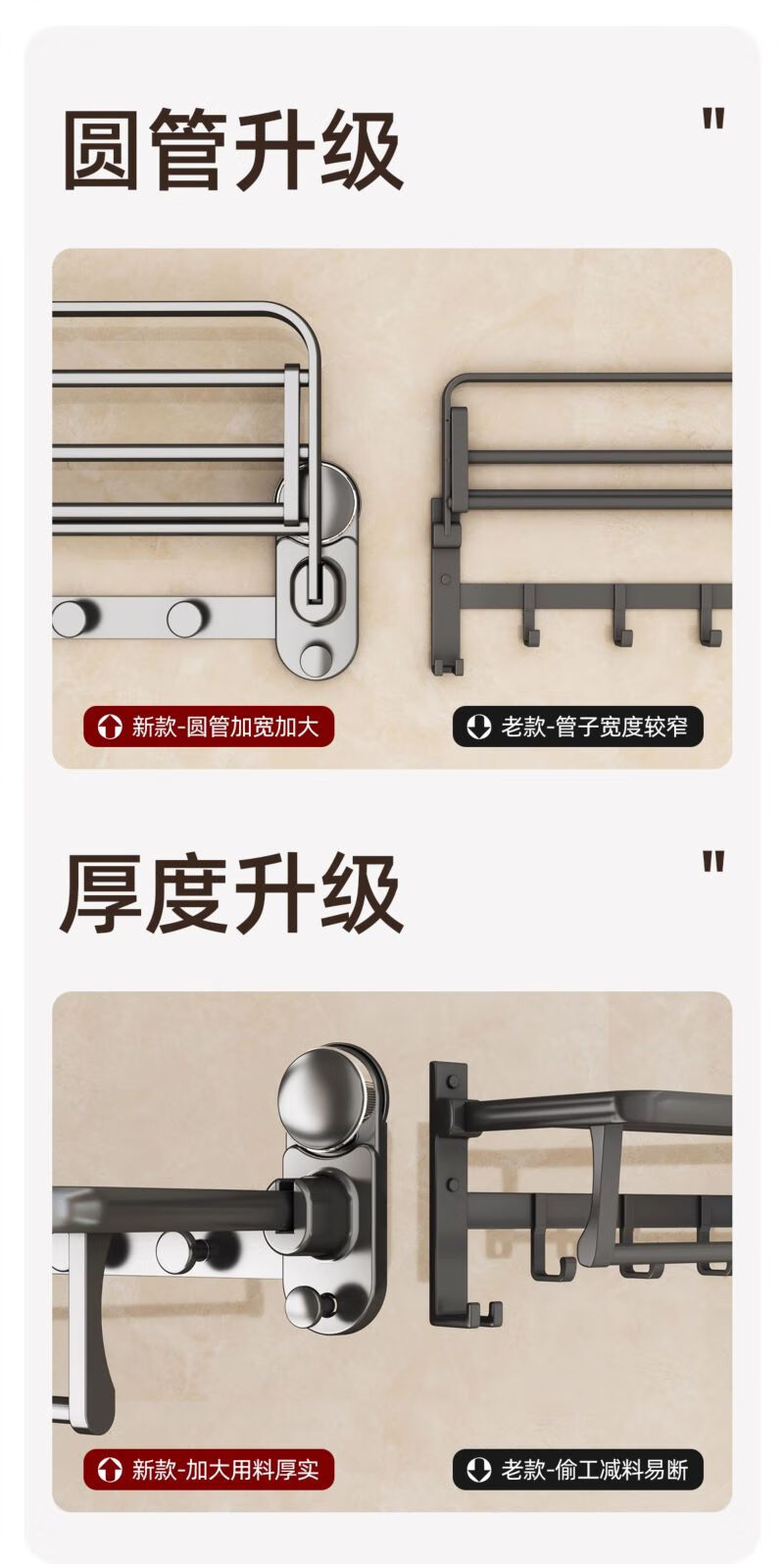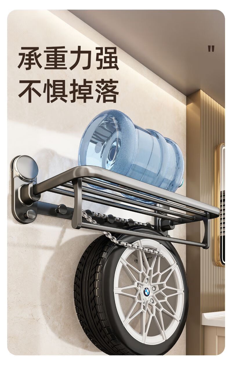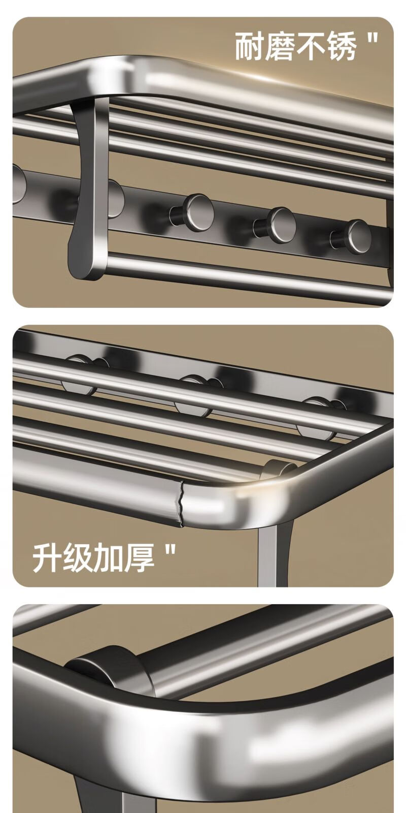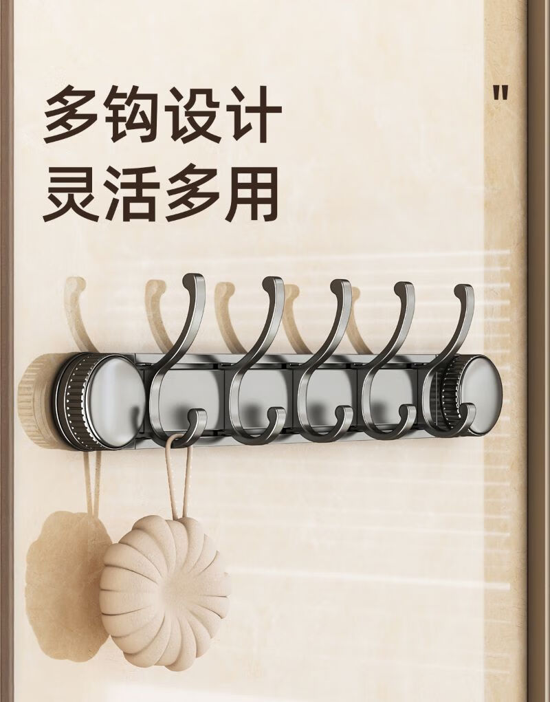包装清单: 吸盘单折叠挂杆浴巾架带排钩50cm-枪灰色
