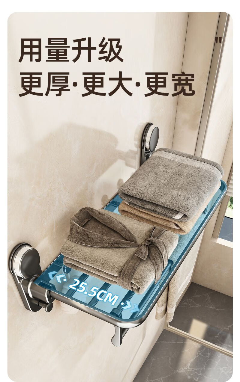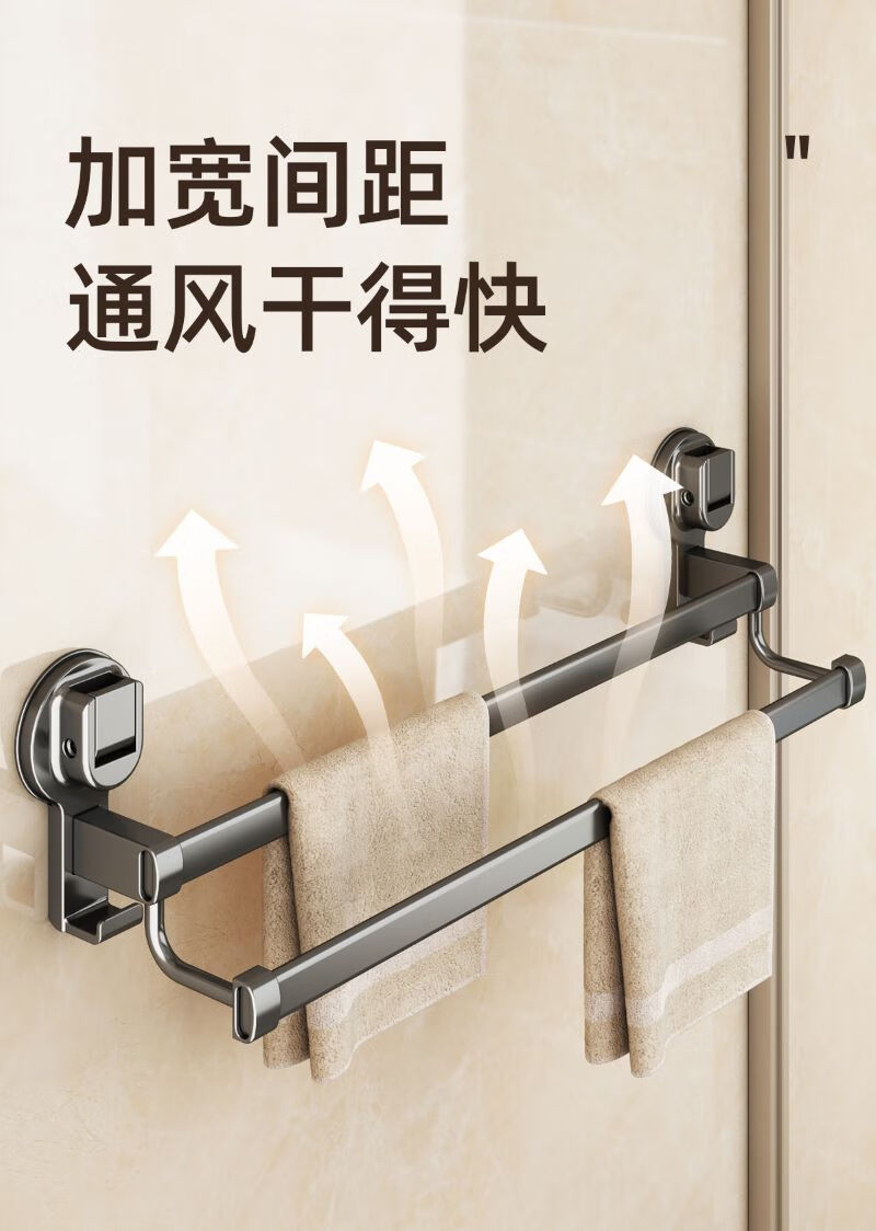• 商品名称:慕亚(MUYA)吸盘毛巾架卫生间免打孔浴巾架子浴室置物架一体厕所收纳挂杆 吸盘单折叠挂杆浴巾架带排钩50cm-枪灰色/件