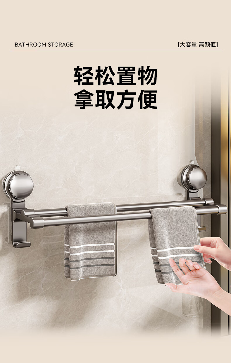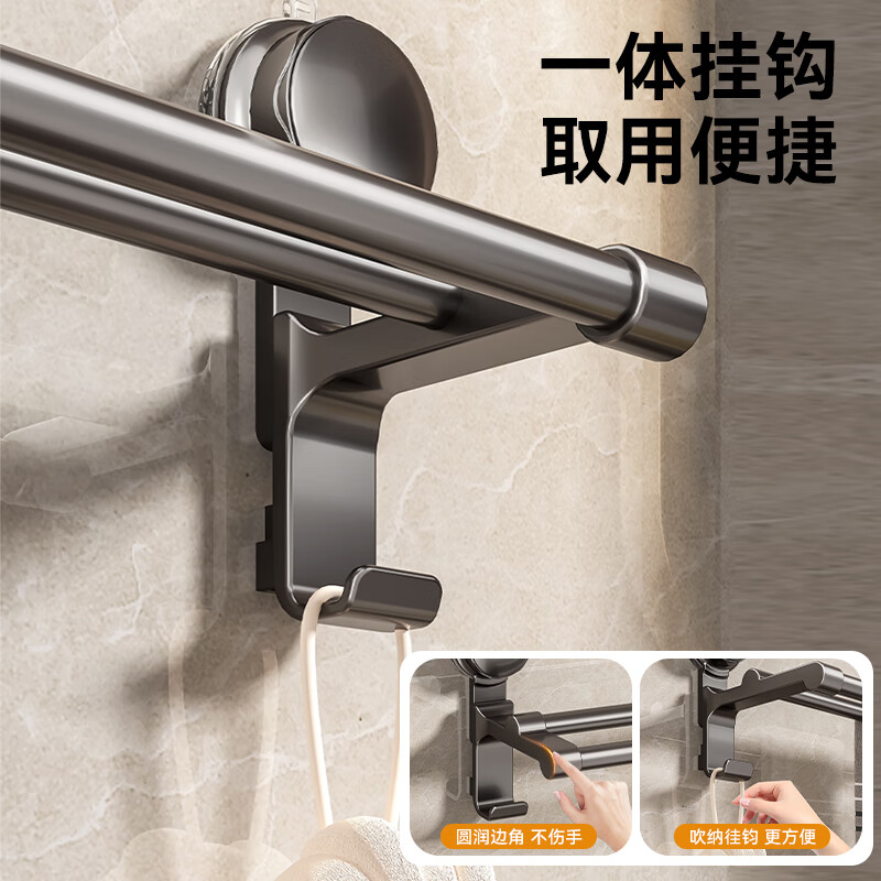 百悍吸盘毛巾架免打孔卫生间置物架毛巾杆壁挂式浴室浴巾收纳挂架 G02L185QH/个