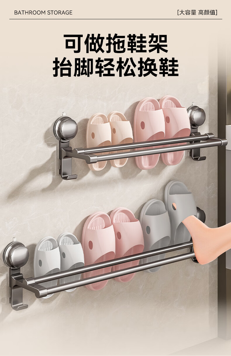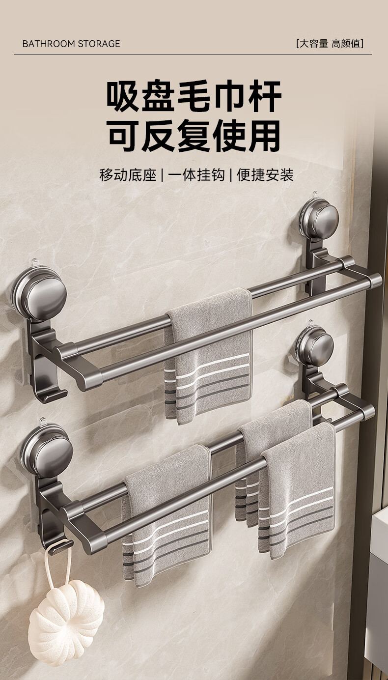 居家布艺  > 毛巾/浴巾/浴袍  > 毛巾  >  百悍  >  百悍吸盘毛巾架免打孔卫生间置物架毛巾杆壁挂式浴室浴巾收纳挂架 G02L185QH/个