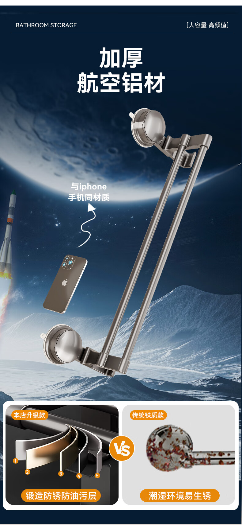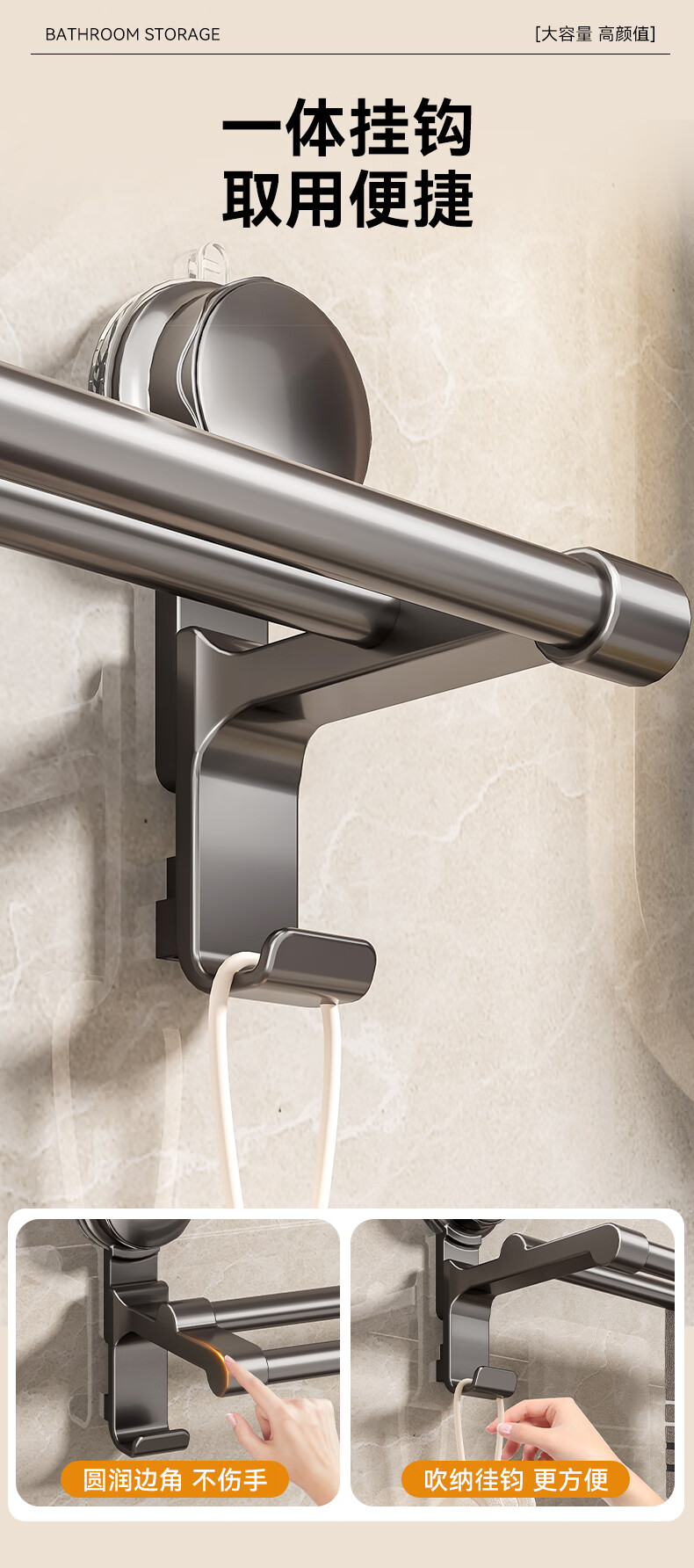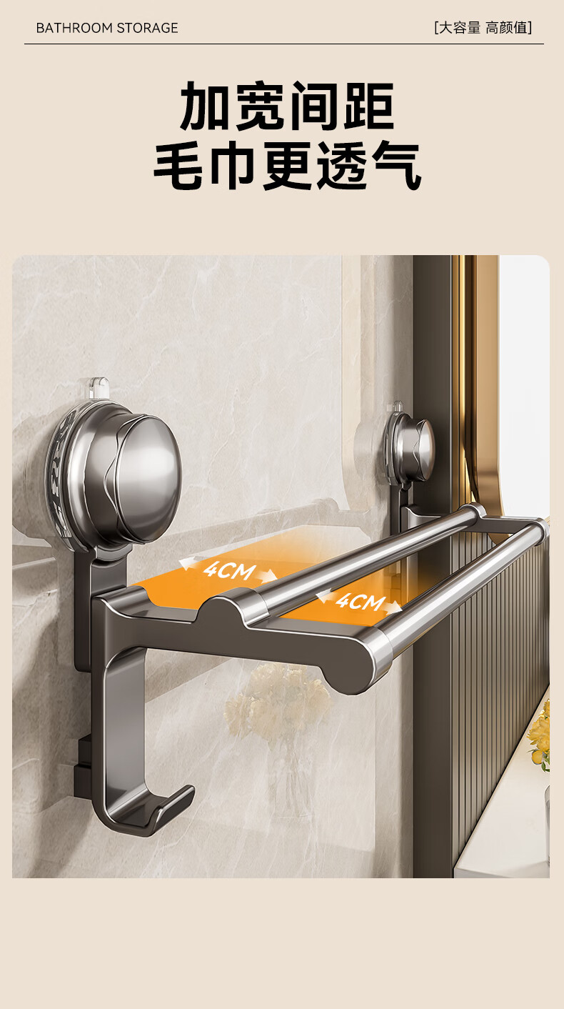 • 商品名称:百悍吸盘毛巾架免打孔卫生间置物架毛巾杆壁挂式浴室浴巾收纳挂架 G02L185QH/个