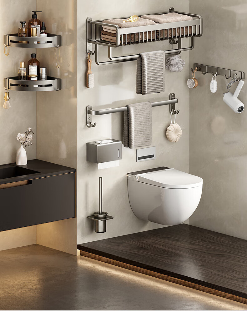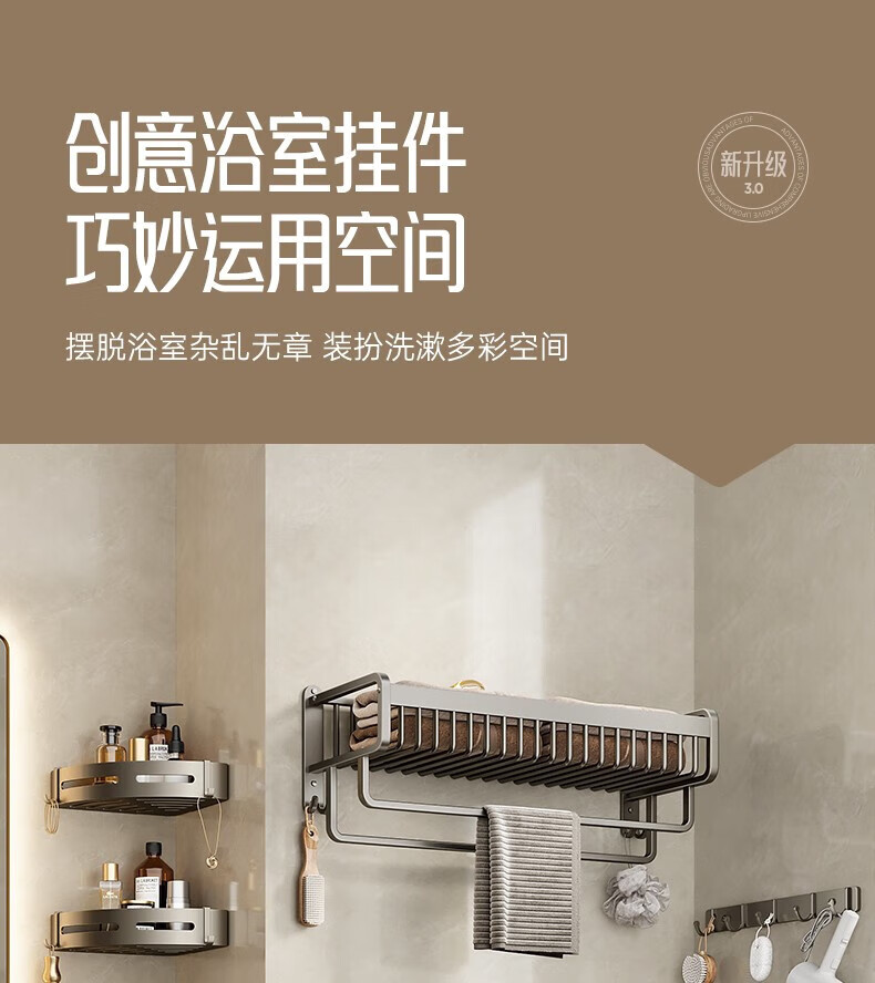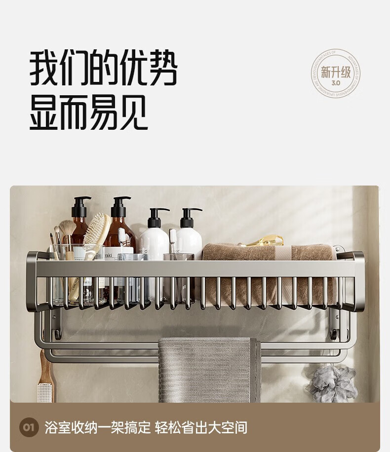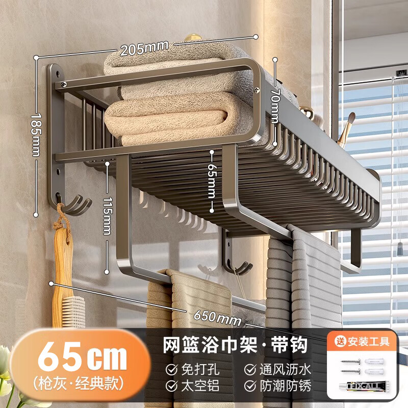 • 商品名称:百悍网篮毛巾架免打孔卫生间置物架浴室挂件厕所卫浴浴巾架收纳挂架 G01L197QH/个