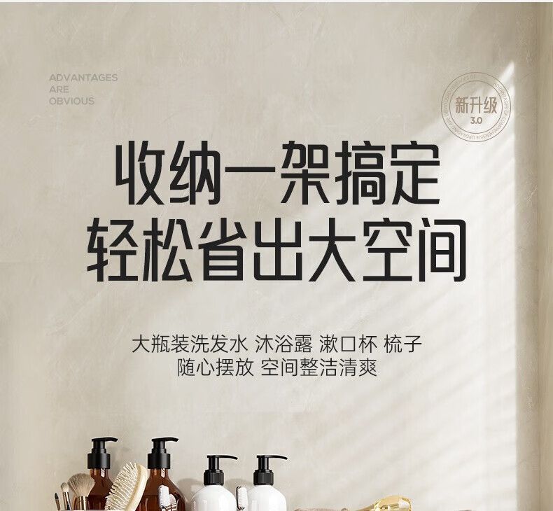 商品名称: 百悍网篮毛巾架免打孔卫生间置物架浴室挂件厕所卫浴浴巾架收纳挂架 G01L197QH/个