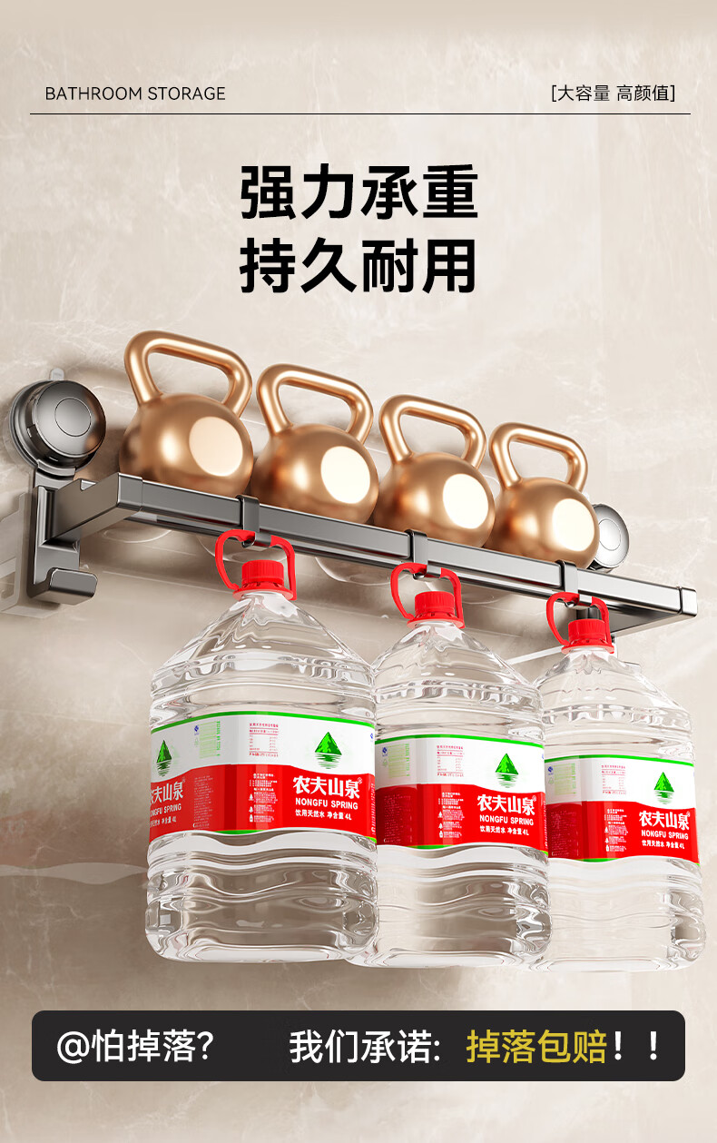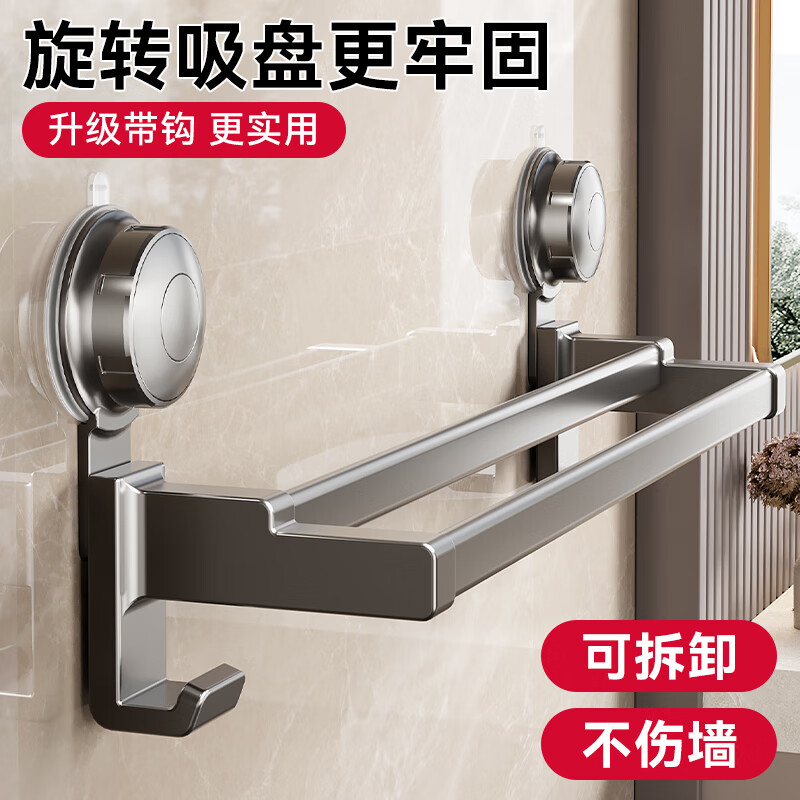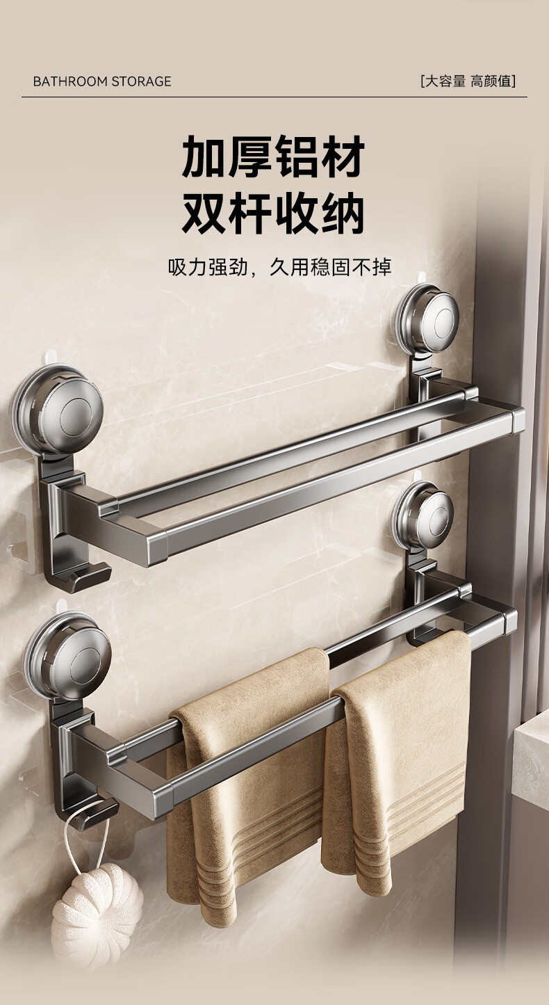 居家布艺  > 毛巾/浴巾/浴袍  > 毛巾  >  百悍  >  百悍卫生间吸盘毛巾挂架浴室挂件置物架毛巾架免打孔毛巾杆 G02L166QH/个