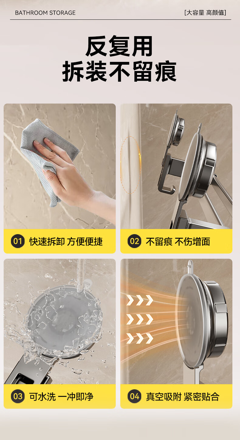 • 商品名称:百悍卫生间吸盘毛巾挂架浴室挂件置物架毛巾架免打孔毛巾杆 G02L167QH/个