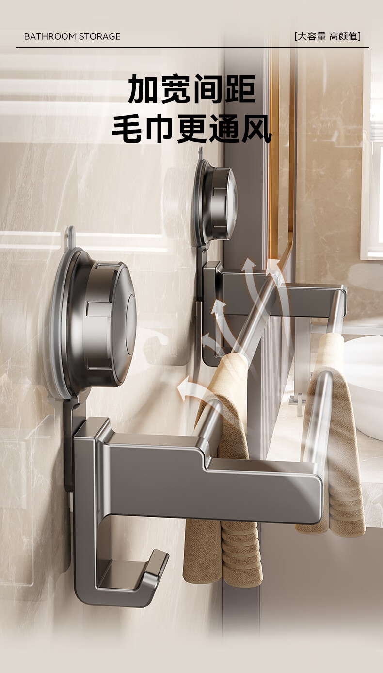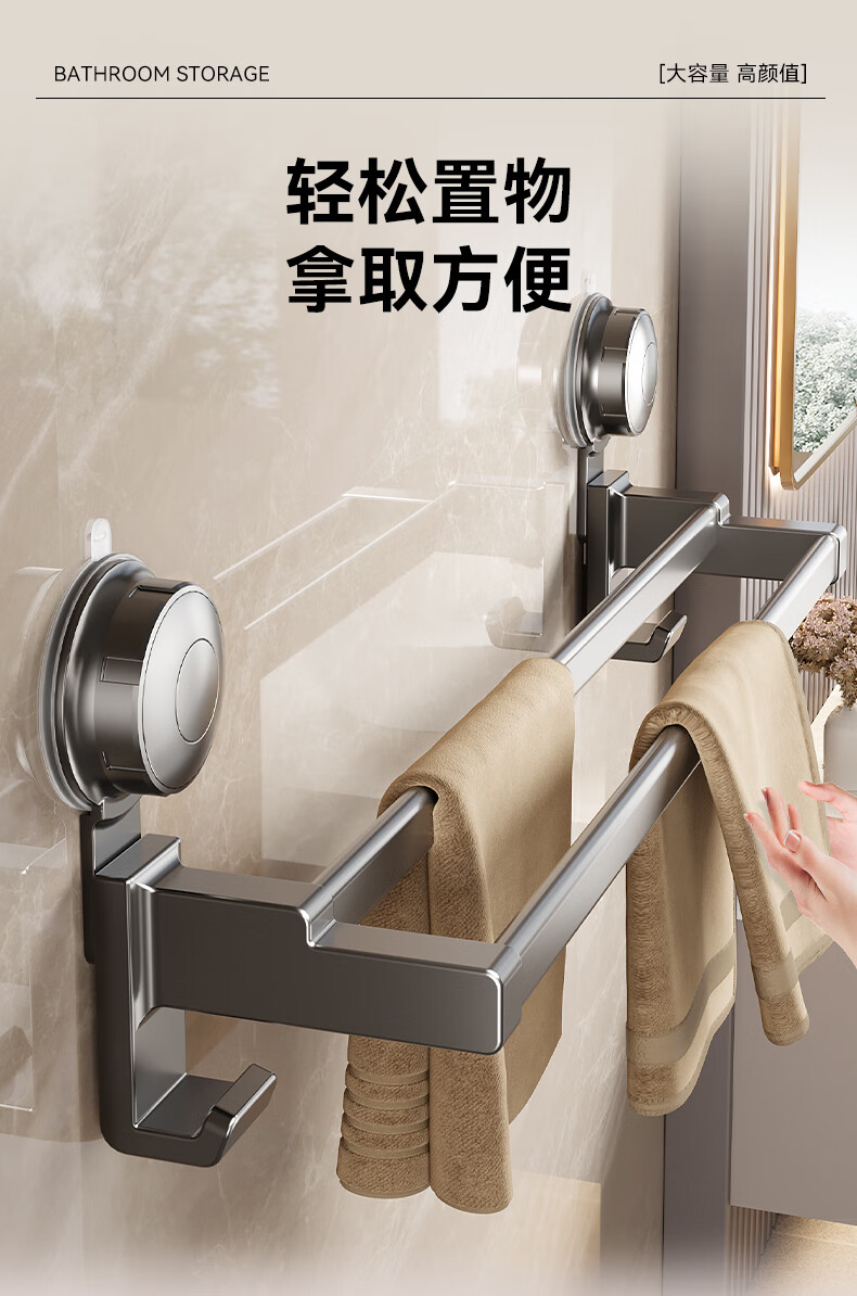 居家布艺  > 毛巾/浴巾/浴袍  > 毛巾  >  百悍  >  百悍卫生间吸盘毛巾挂架浴室挂件置物架毛巾架免打孔毛巾杆 G02L167QH/个