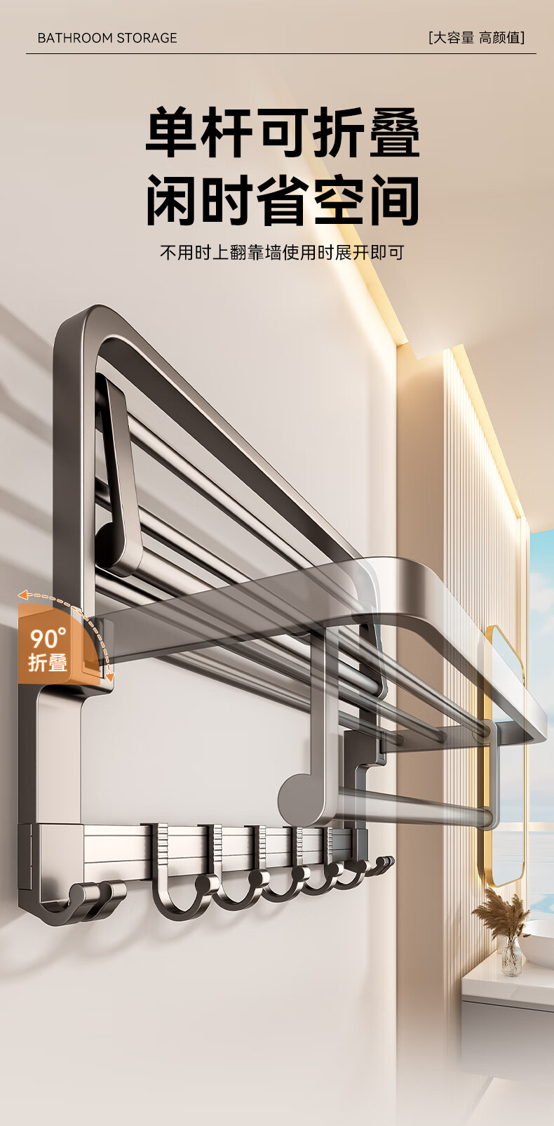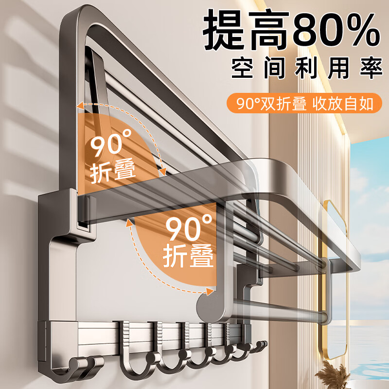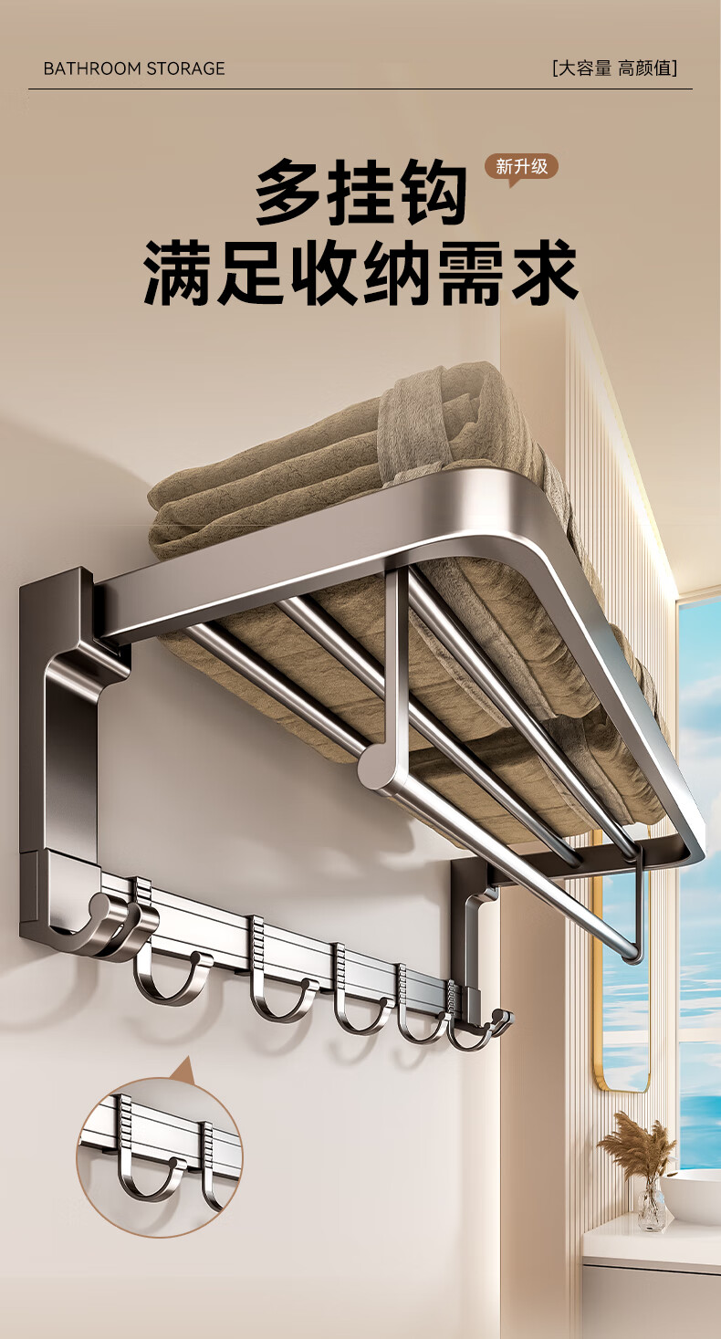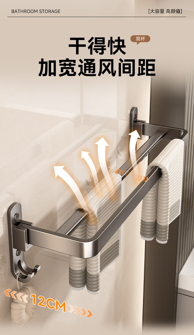 居家布艺  > 毛巾/浴巾/浴袍  > 毛巾  >  百悍  >  百悍卫生间免打孔毛巾架置物架浴室挂件厕所卫浴浴巾架收纳挂架套装 GL00533QH/组