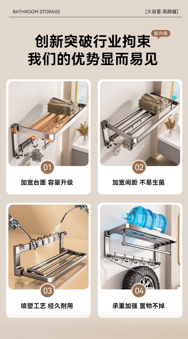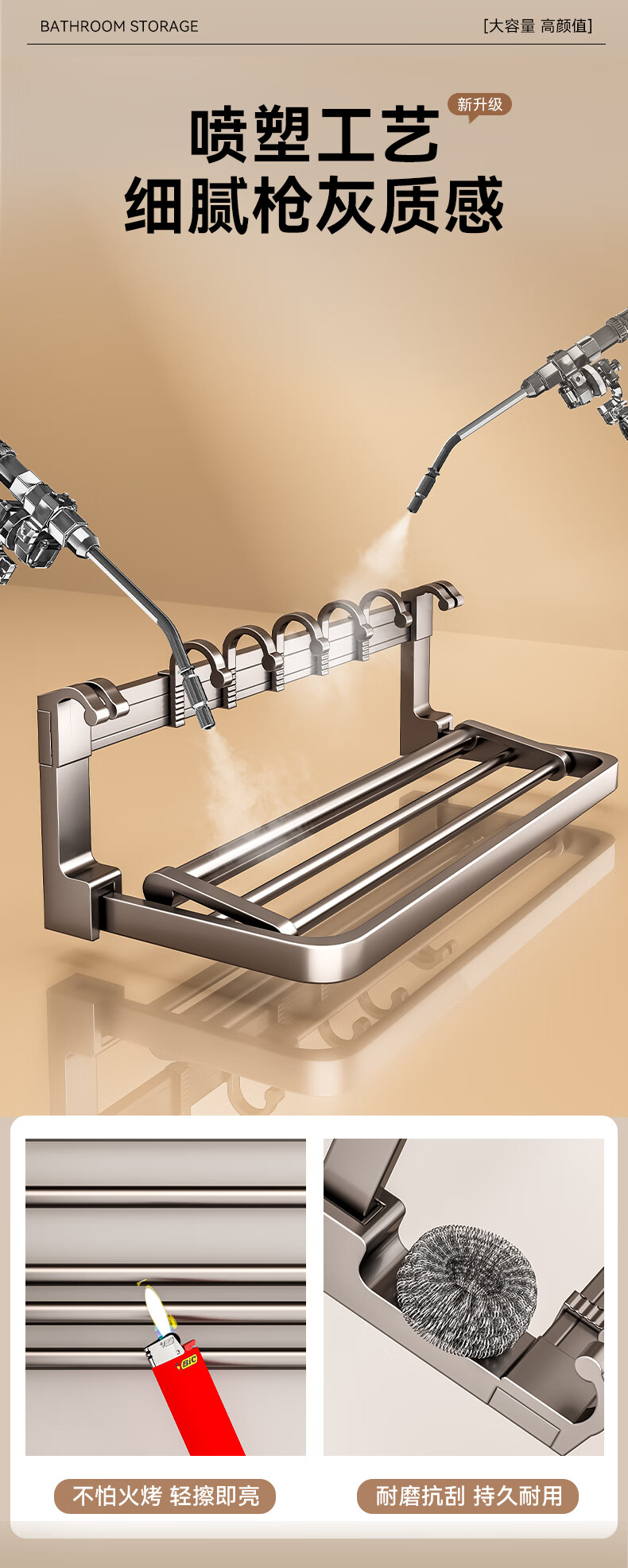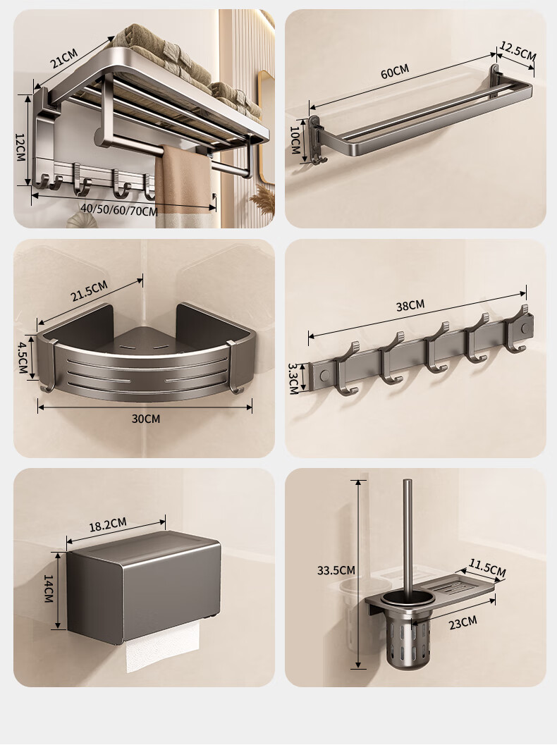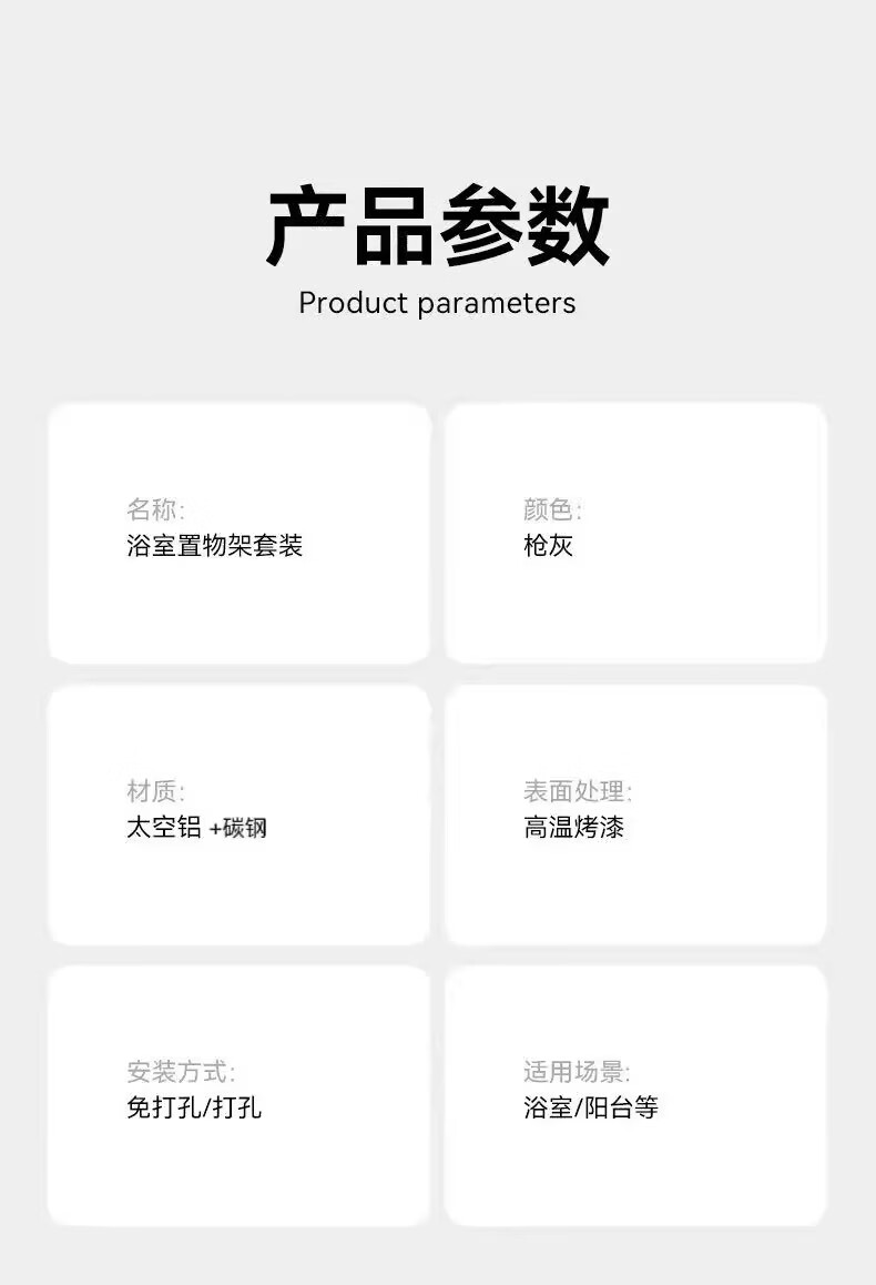 • 商品名称:百悍卫生间免打孔毛巾架置物架浴室挂件厕所卫浴浴巾架收纳挂架套装 GL00533QH/组