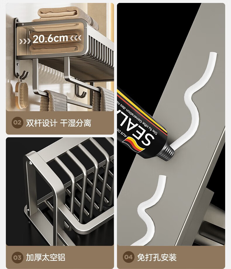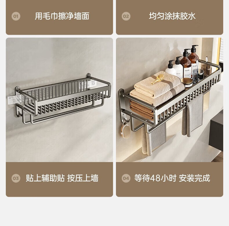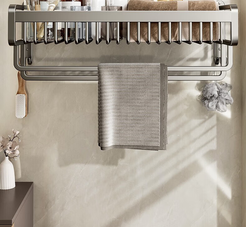 • 商品名称:百悍网篮毛巾架免打孔卫生间置物架浴室挂件厕所卫浴浴巾架收纳挂架 G01L197QH/个