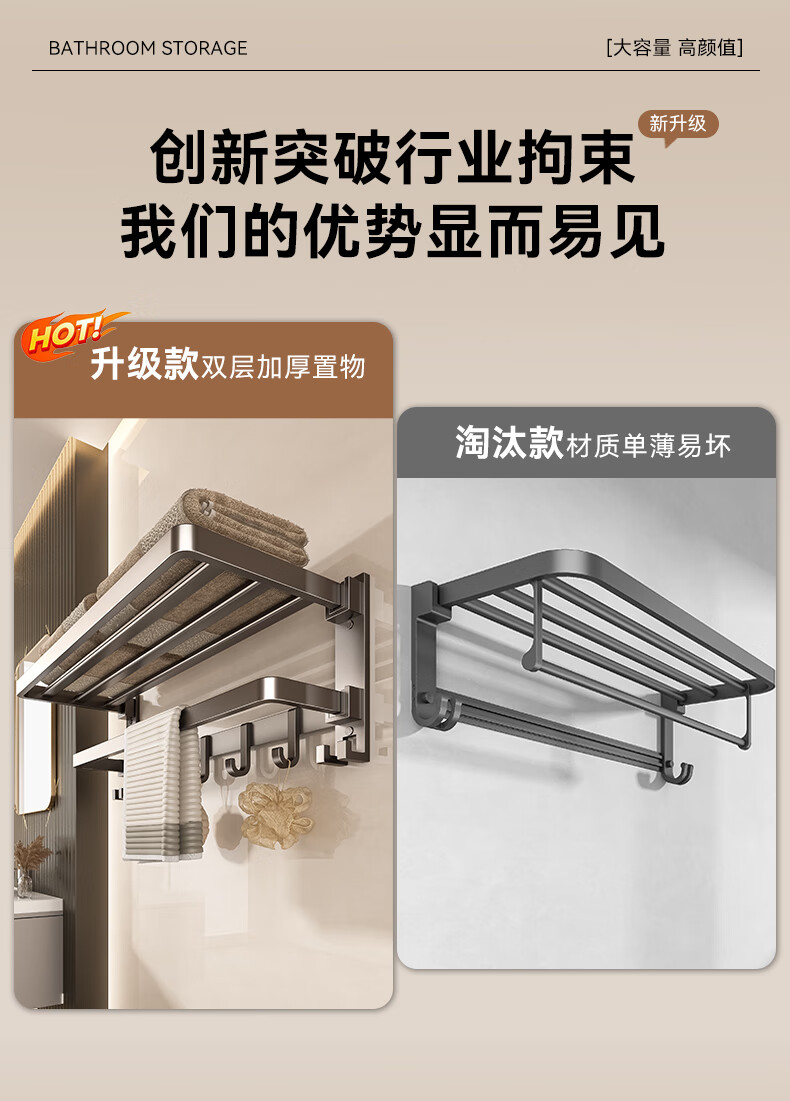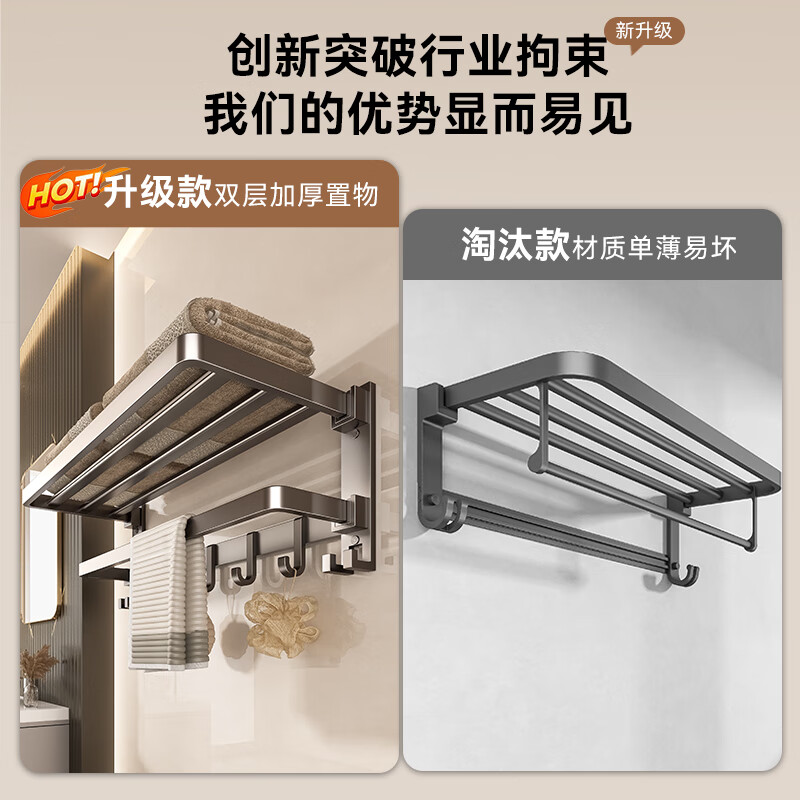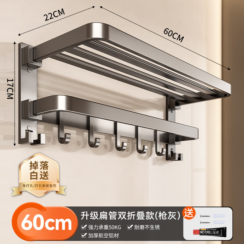 商品名称: 百悍毛巾架免打孔卫生间置物架浴室挂件厕所浴巾架套装卫浴洗手间收纳 G01L116QH/套