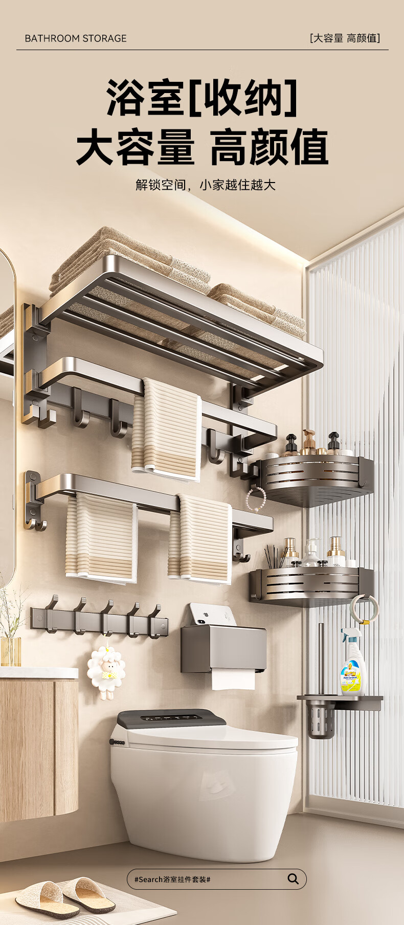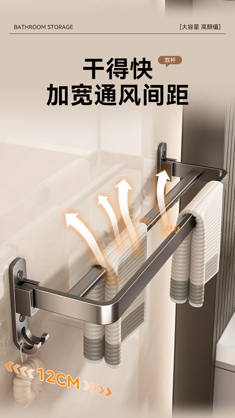 居家布艺  > 毛巾/浴巾/浴袍  > 毛巾  >  百悍  >  百悍毛巾架免打孔卫生间置物架浴室挂件厕所浴巾架套装卫浴洗手间收纳 G01L116QH/套