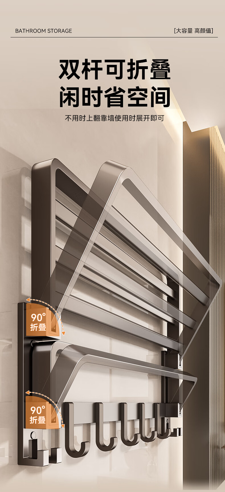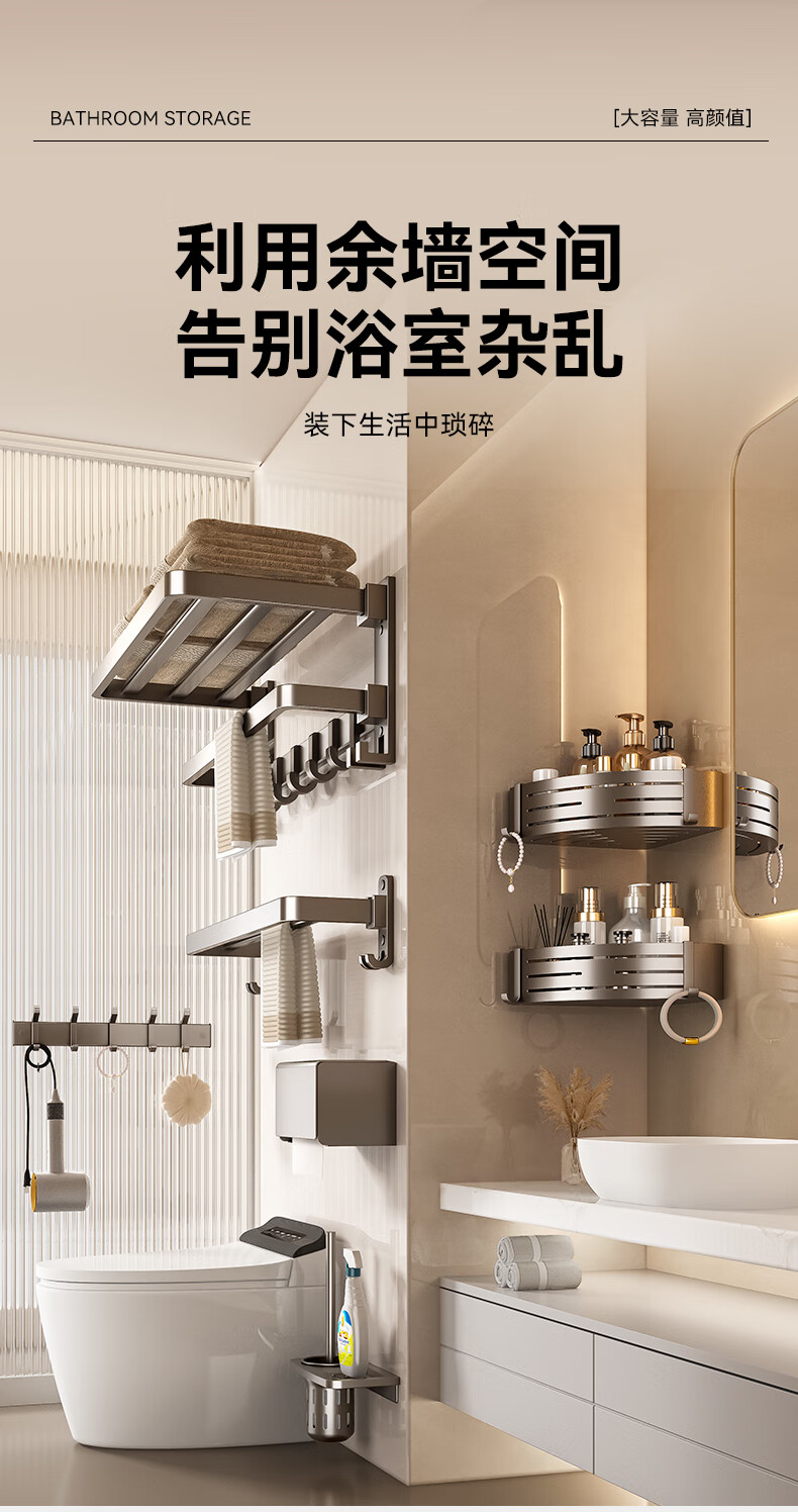 • 商品名称:百悍毛巾架免打孔卫生间置物架浴室挂件厕所浴巾架套装卫浴洗手间收纳 G01L116QH/套