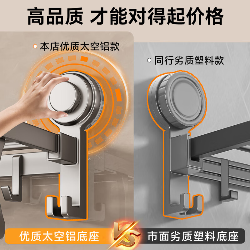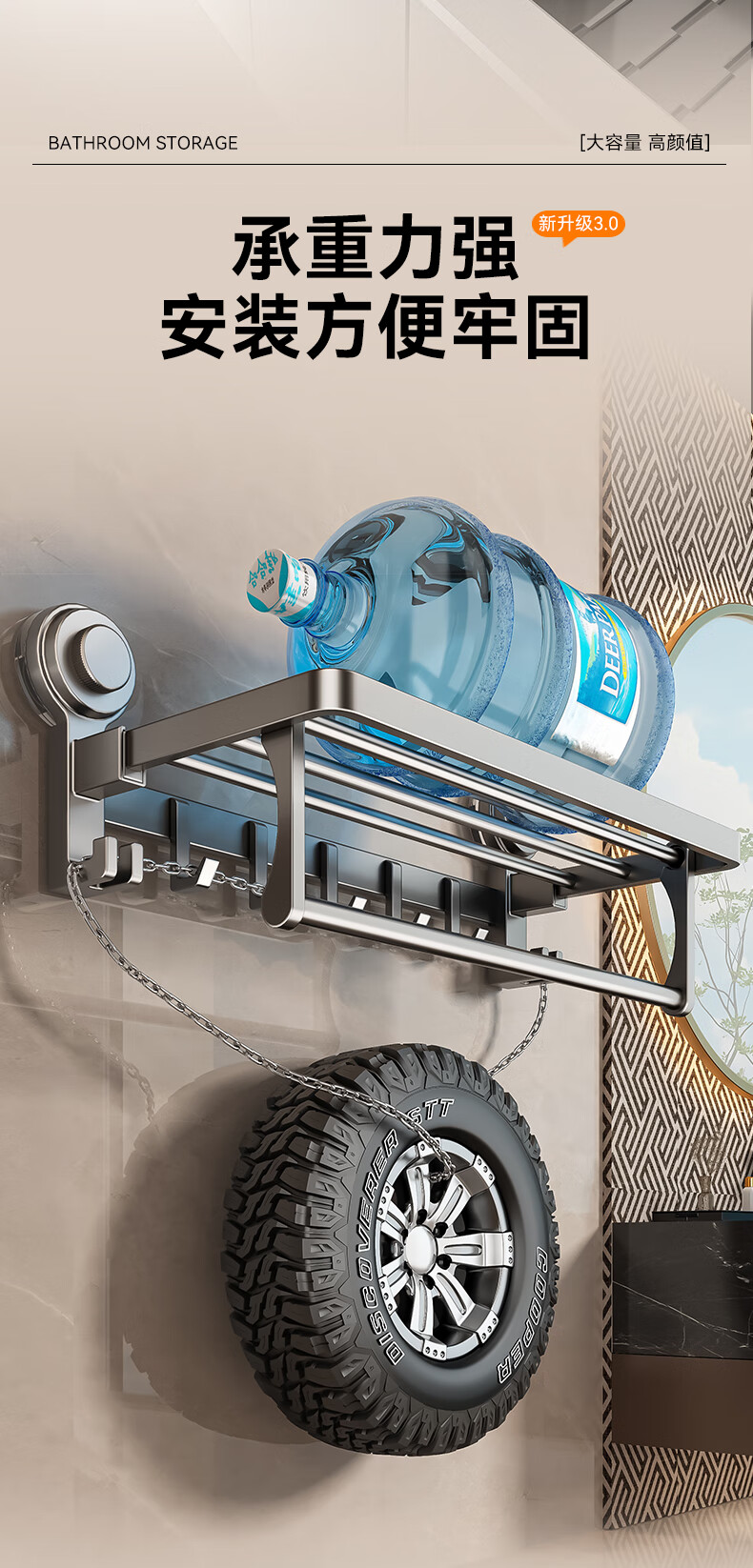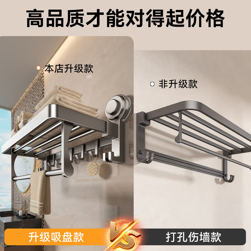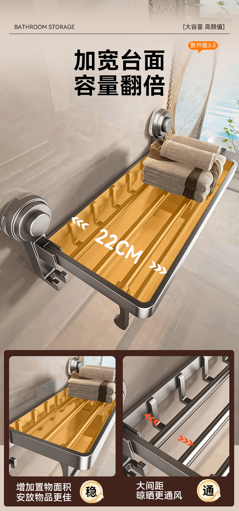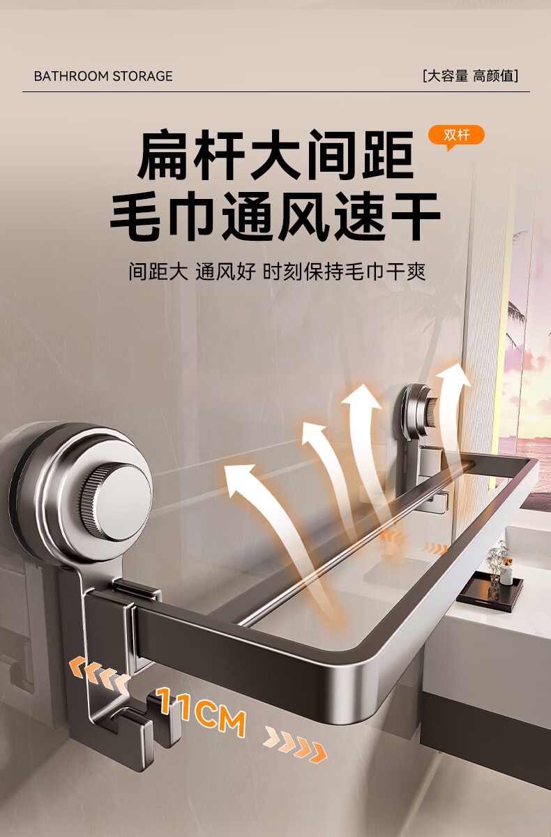 • 商品名称:百悍卫生间吸盘式毛巾架免打孔浴室挂件置物架浴巾架墙上毛巾挂架 GL03503QH/套