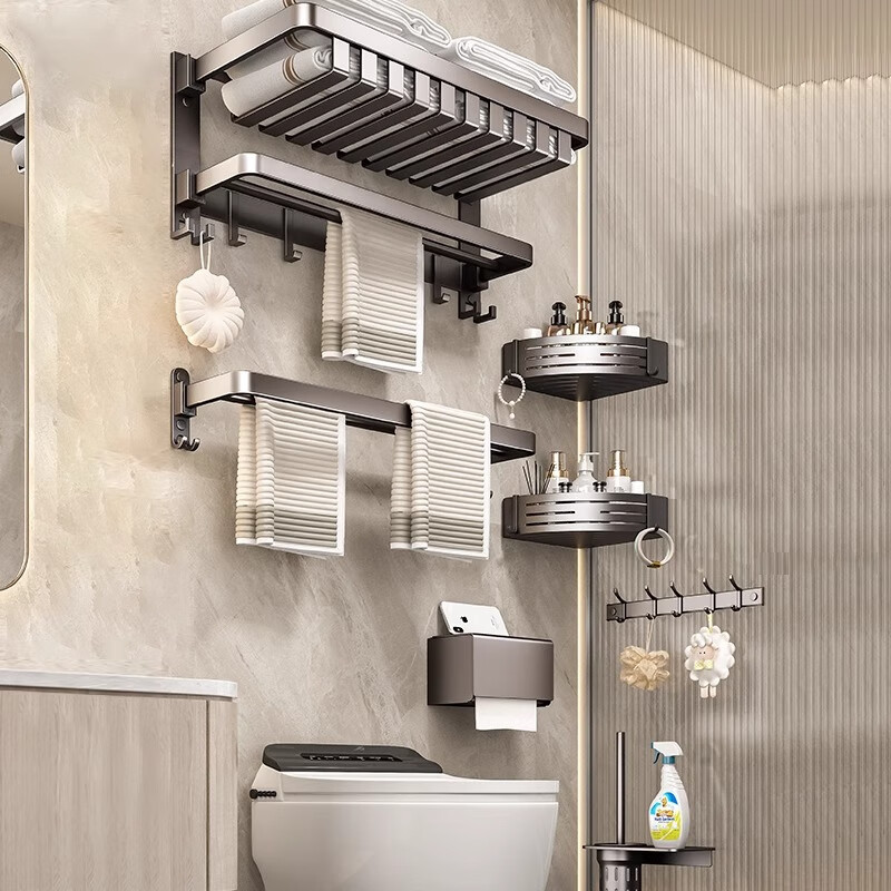 百悍毛巾架免打孔卫生间置物架浴室挂件厕所浴巾架套装卫浴洗手间收纳 GLL0122QH/件