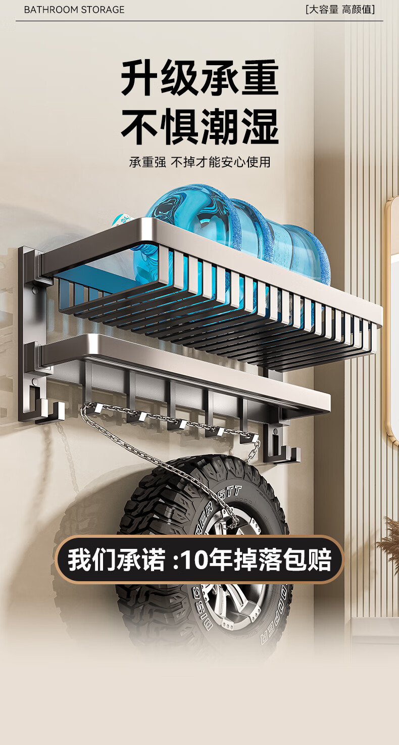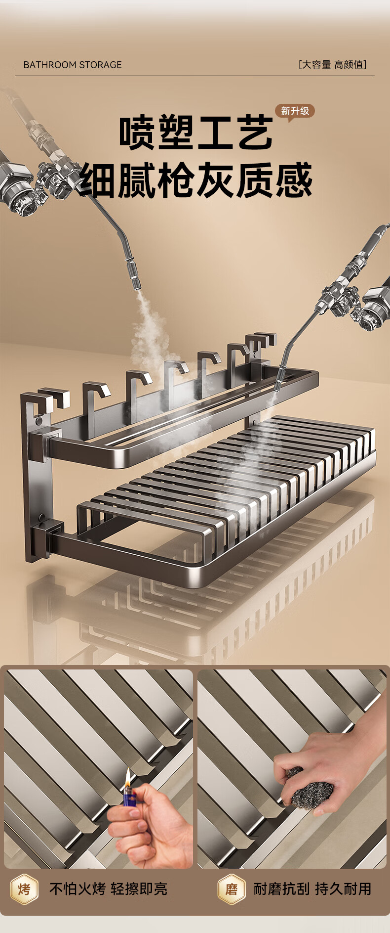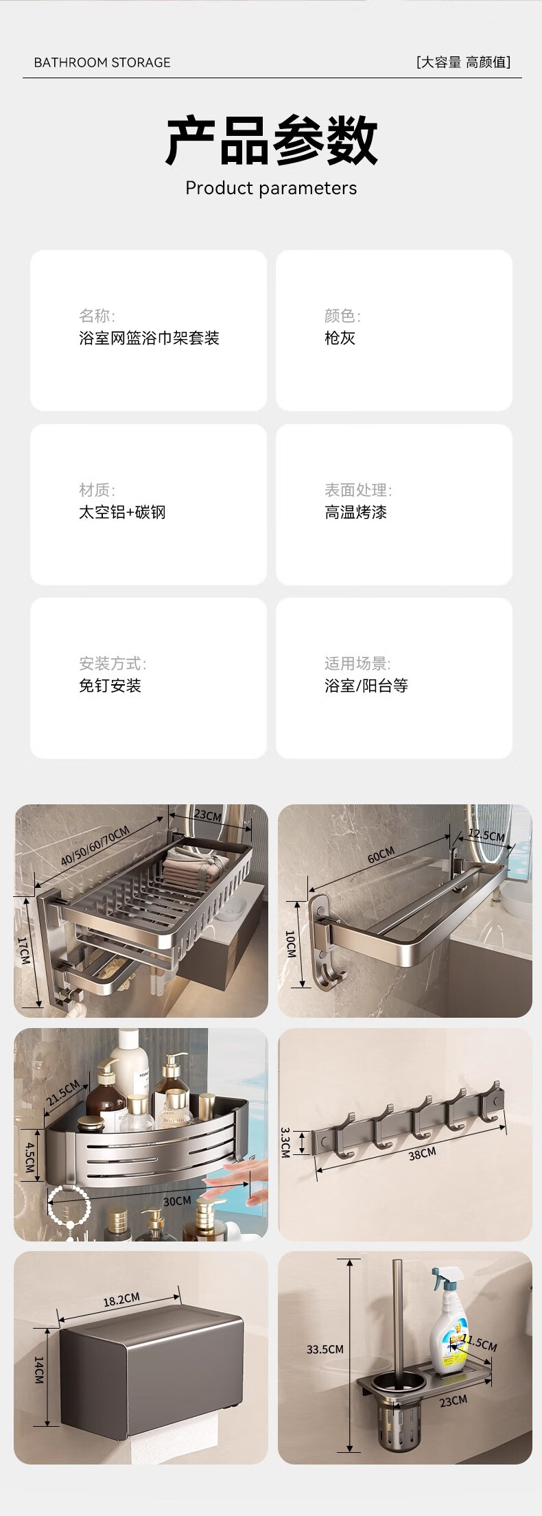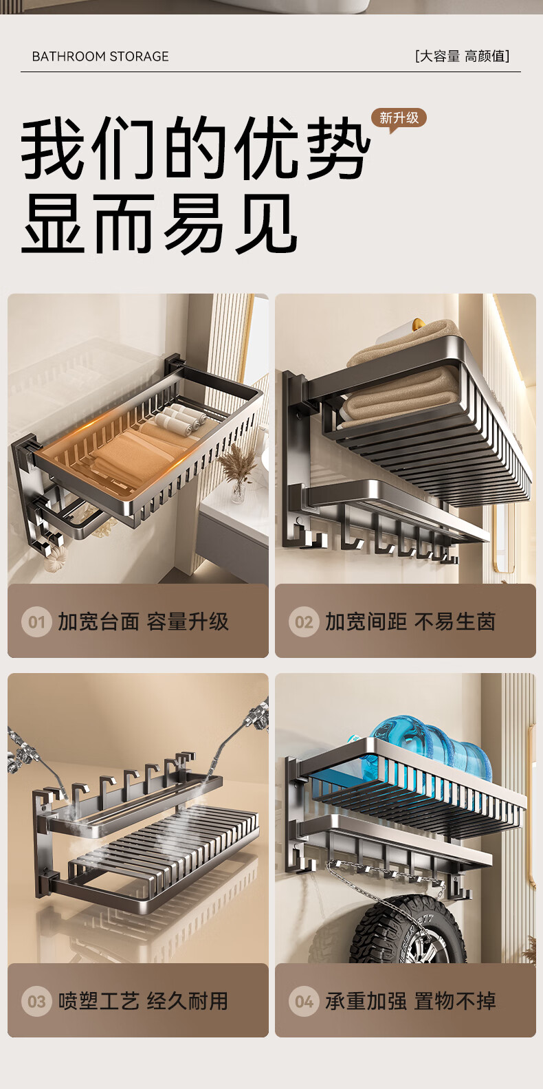 商品名称: 百悍毛巾架免打孔卫生间置物架浴室挂件厕所浴巾架套装卫浴洗手间收纳 GLL0122QH/件