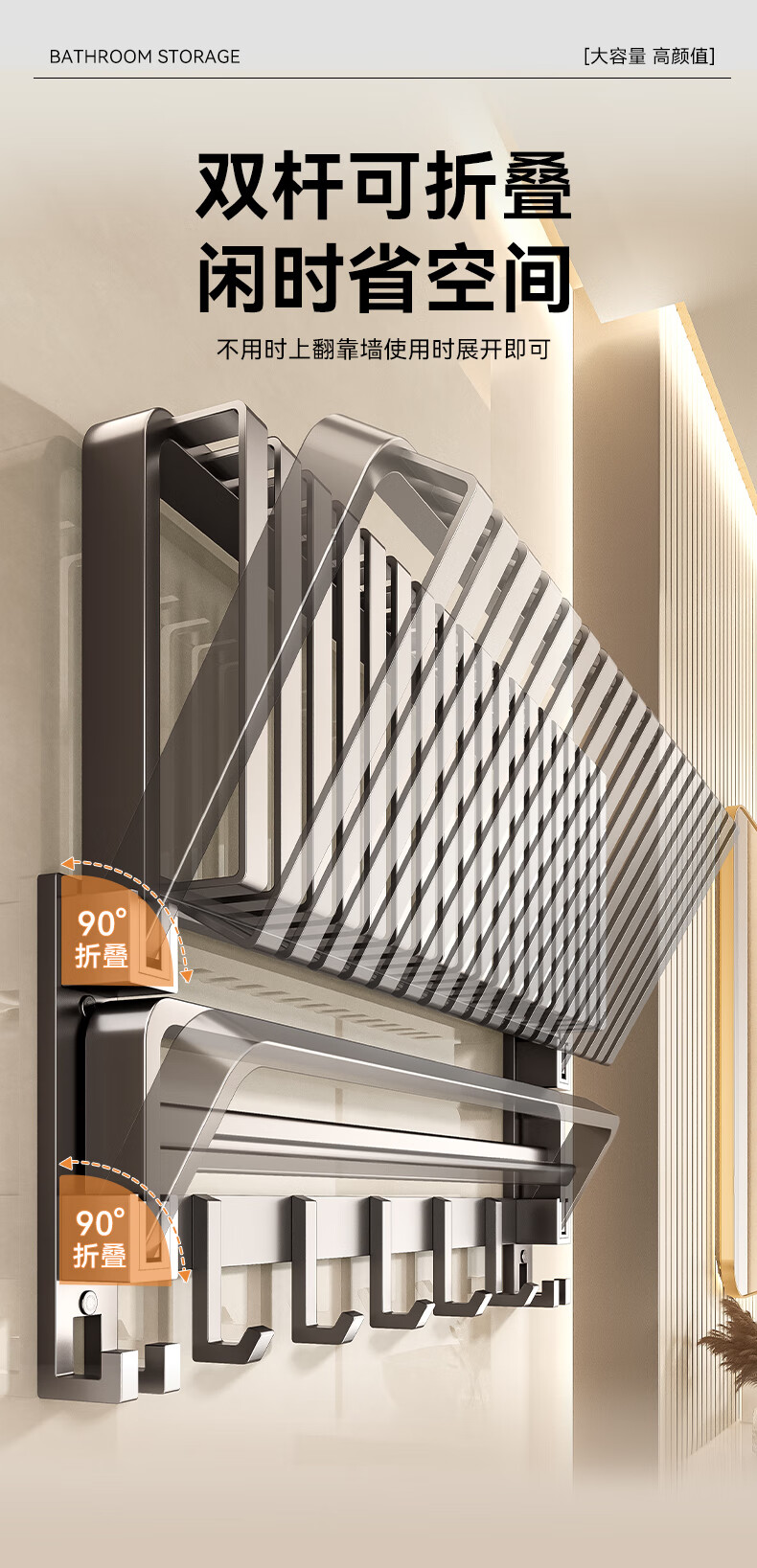 居家布艺  > 毛巾/浴巾/浴袍  > 毛巾  >  百悍  >  百悍毛巾架免打孔卫生间置物架浴室挂件厕所浴巾架套装卫浴洗手间收纳 GLL0122QH/件