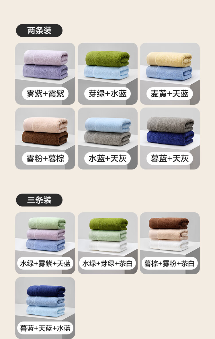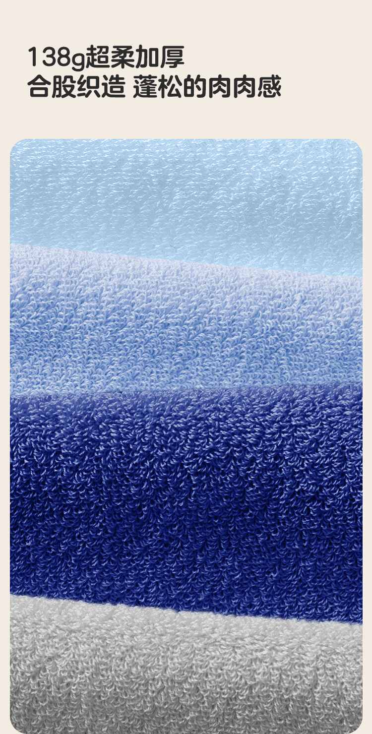 居家布艺  > 毛巾/浴巾/浴袍  > 毛巾  >  京东京造  >  京东京造138g加厚沐兰迪毛巾 阿瓦提长绒棉7A抗菌纯棉 3条 暮蓝+天蓝+水蓝 沐兰迪色3条装暮蓝+天蓝+水蓝/袋