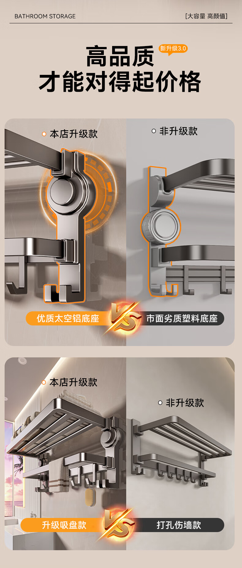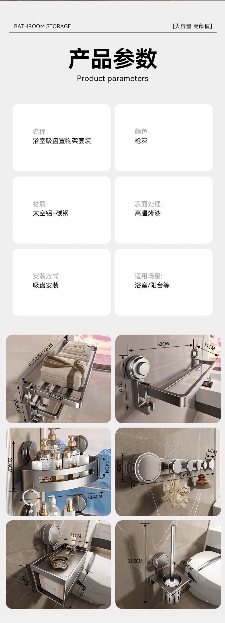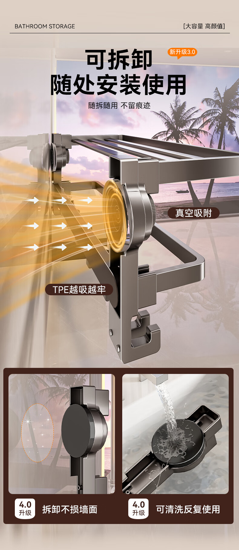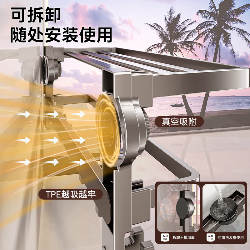 • 商品名称:百悍吸盘毛巾架免打孔卫生间置物架浴室挂件厕所卫浴浴巾架收纳挂架 G01L316QH/个