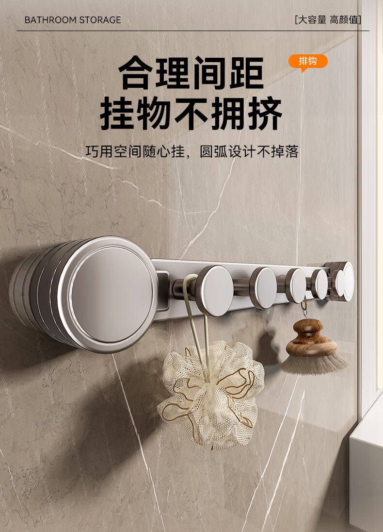 商品名称: 百悍吸盘毛巾架免打孔卫生间置物架浴室挂件厕所卫浴浴巾架收纳挂架 G01L316QH/个