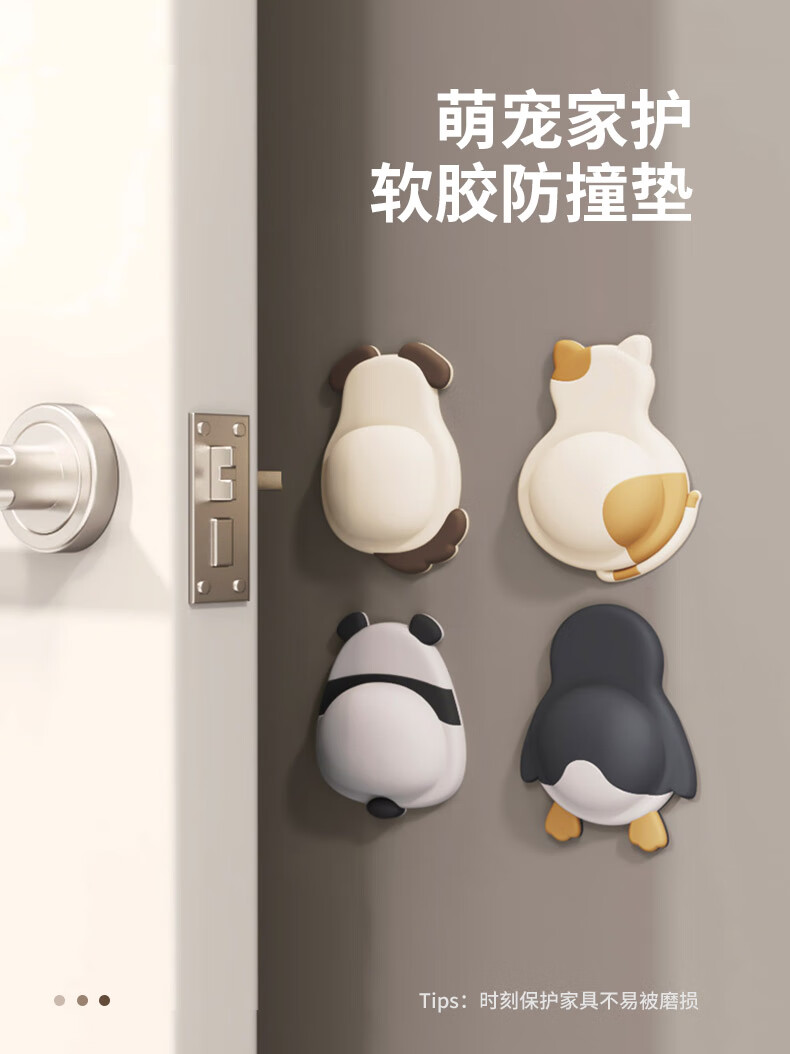 生活日用  > 日用杂货  > 日杂小件  >  HOUYA  >  HOUYA门把手防撞垫4个装可爱小动物门挡门后防碰撞垫冰箱防撞贴 HY2388/只