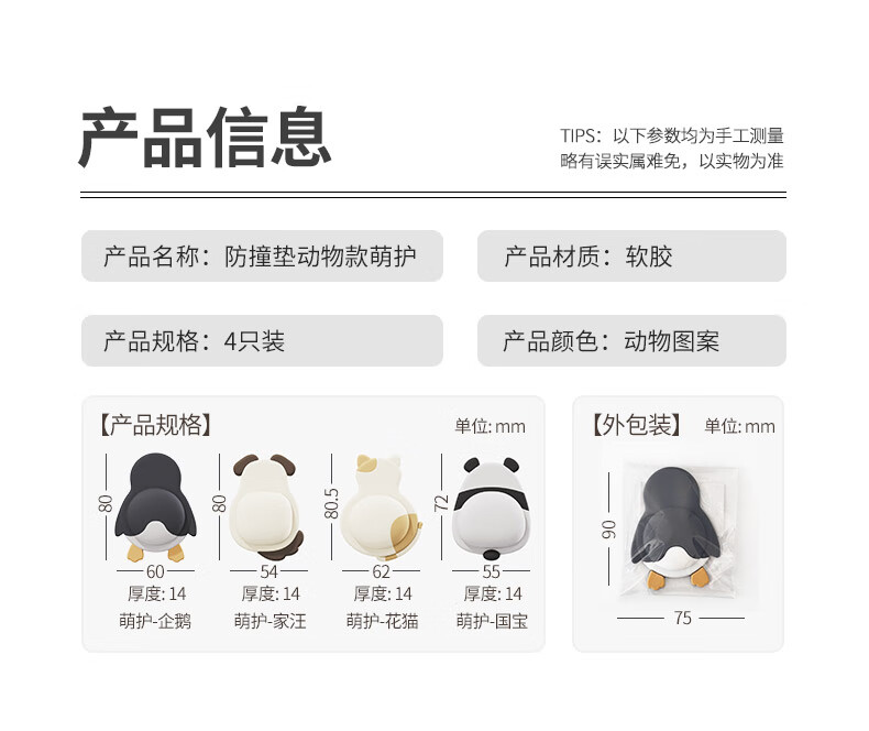 • 商品名称:HOUYA门把手防撞垫4个装可爱小动物门挡门后防碰撞垫冰箱防撞贴 HY2388/只