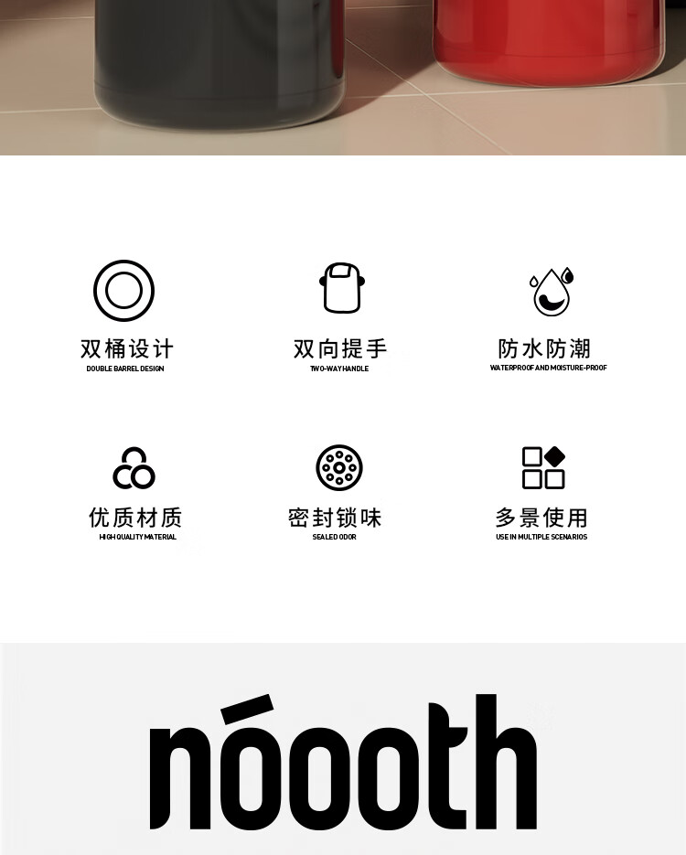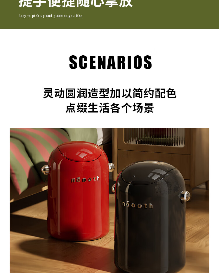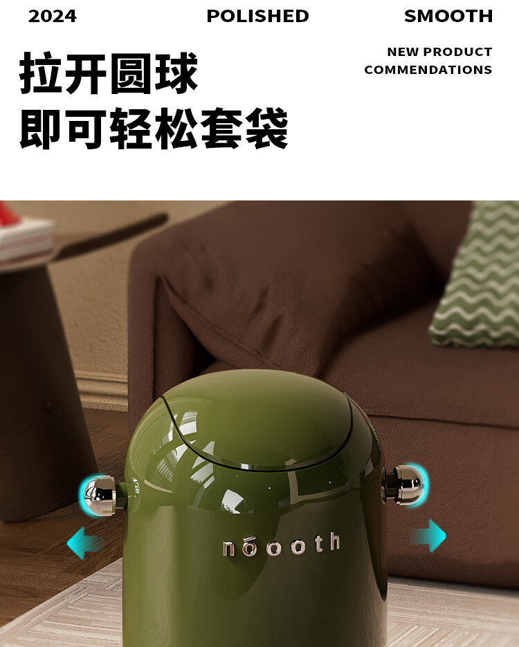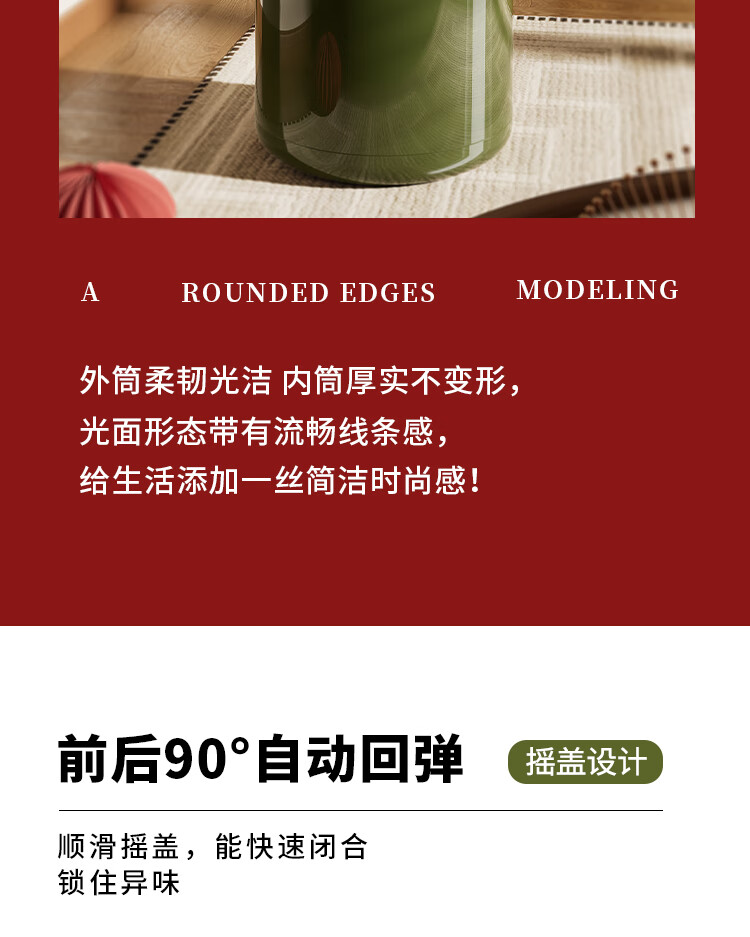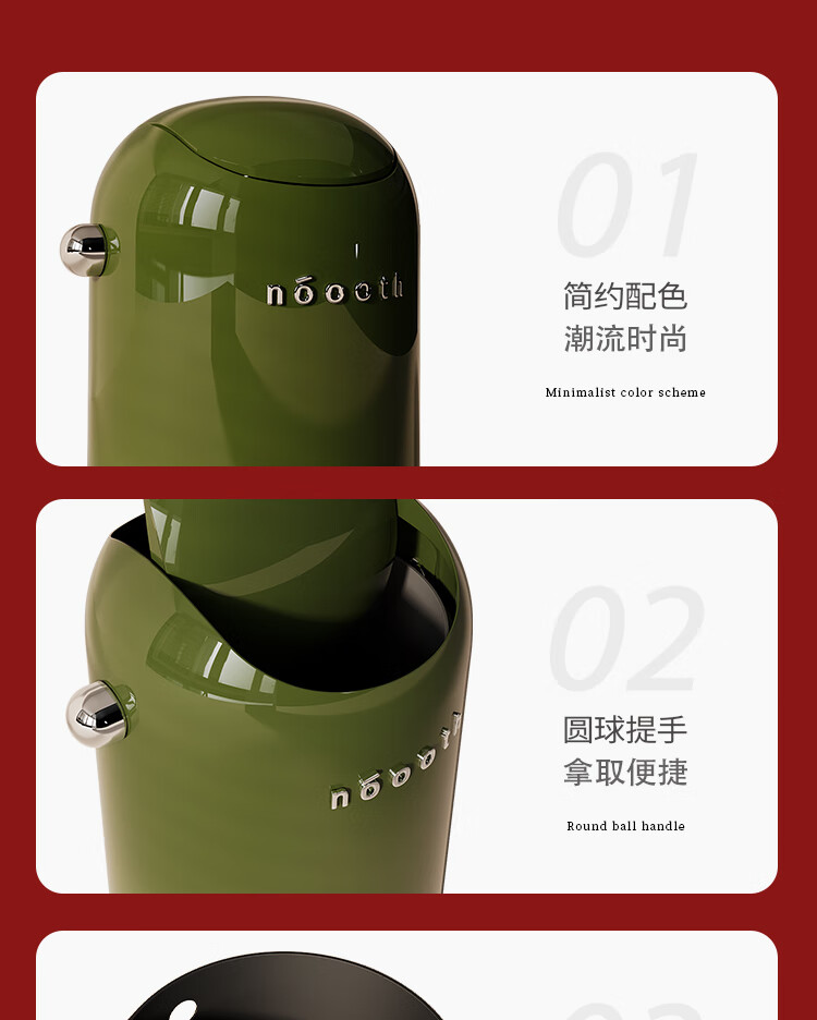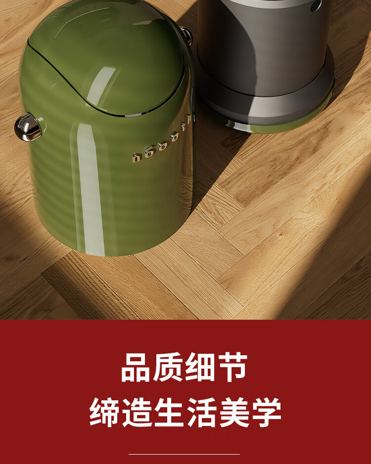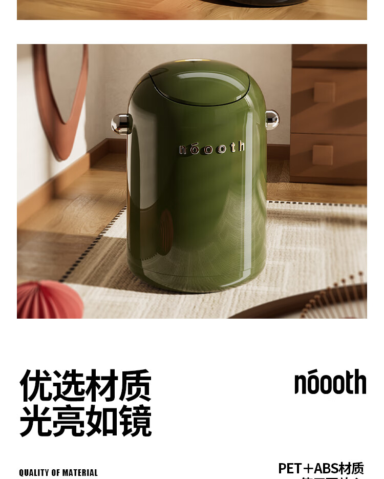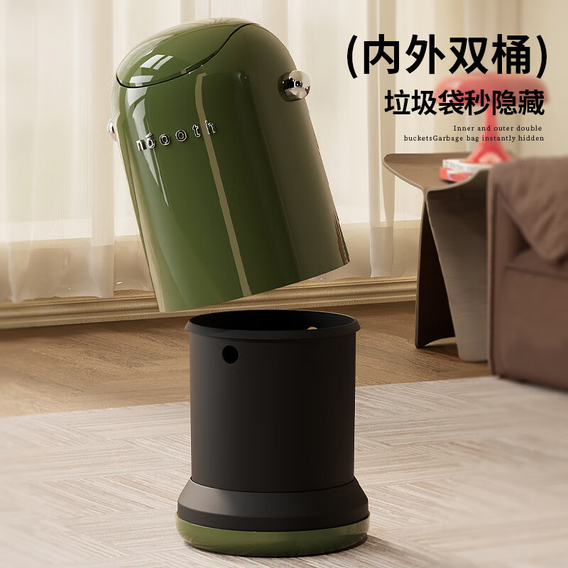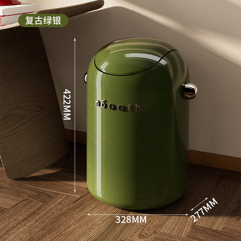 • 商品名称:诺室摇盖客厅垃圾桶卧室家用厨房厕所卫生间翻盖办公室高颜值 绿银15L G243428191730/个