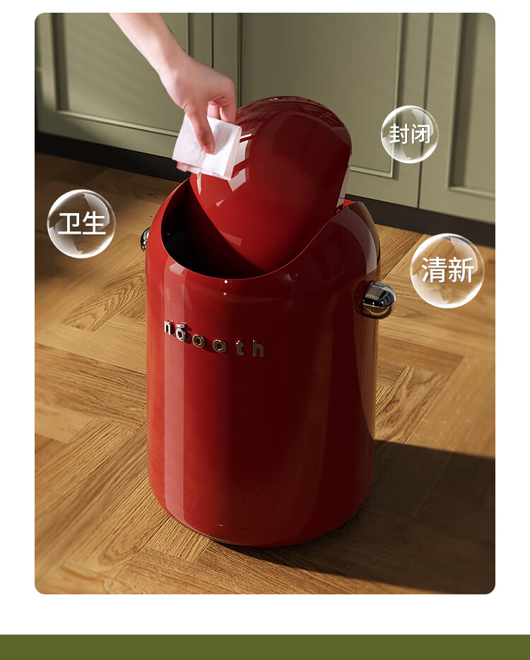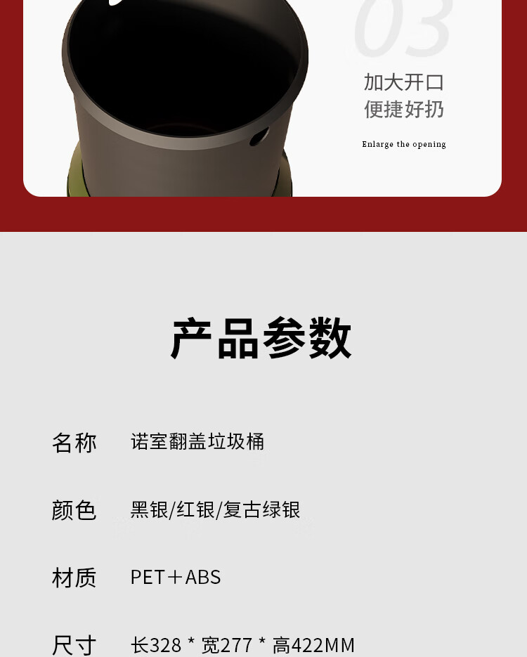 • 商品名称:诺室厨房垃圾桶挂式家用厨房专用免弯腰厕所垃圾筒大号收纳桶 红银15L G243428191250/个