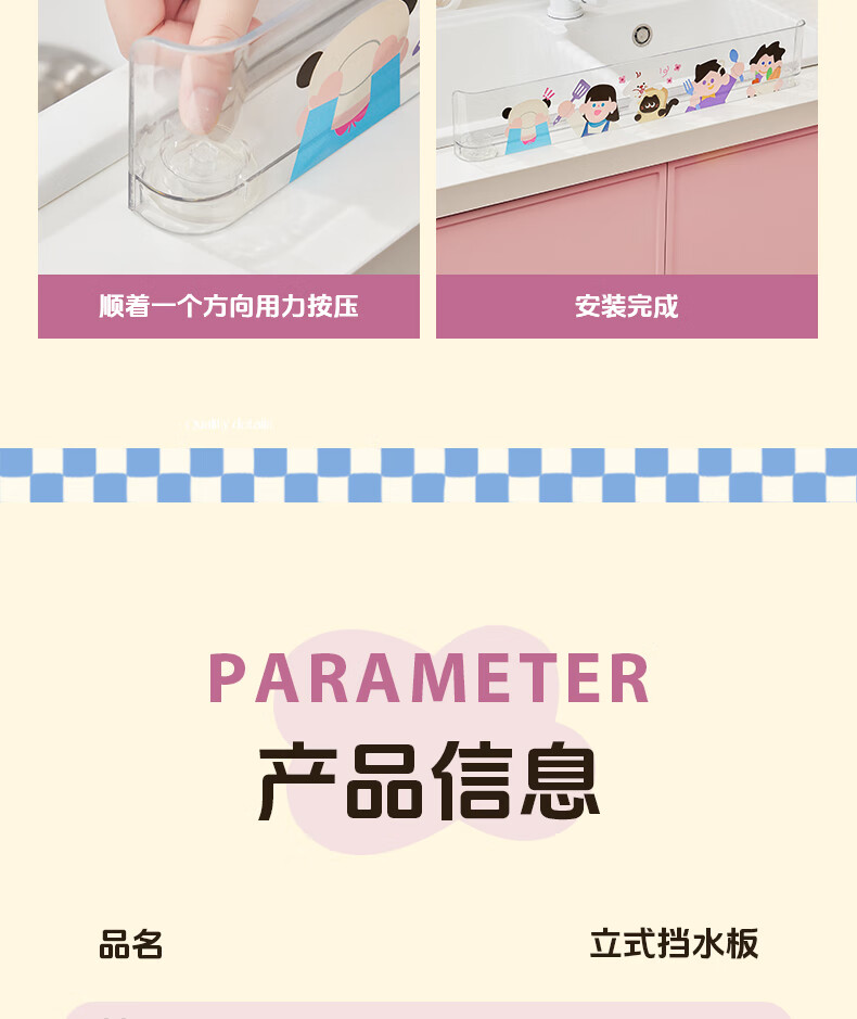 生活日用  > 日用杂货  > 日杂小件  >  诺室  >  诺室幸福家水槽挡水板厨房水池洗碗池防溅水挡板隔板硅胶挡水条 J242079121G60/个