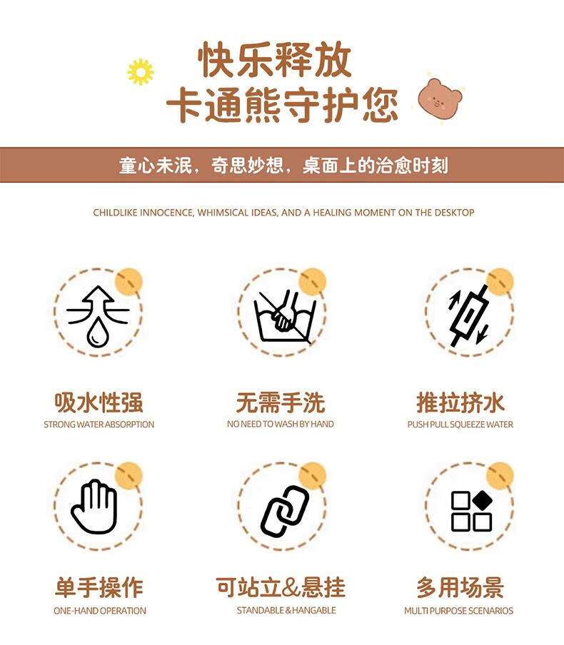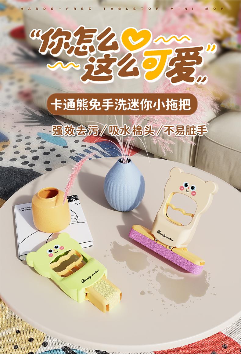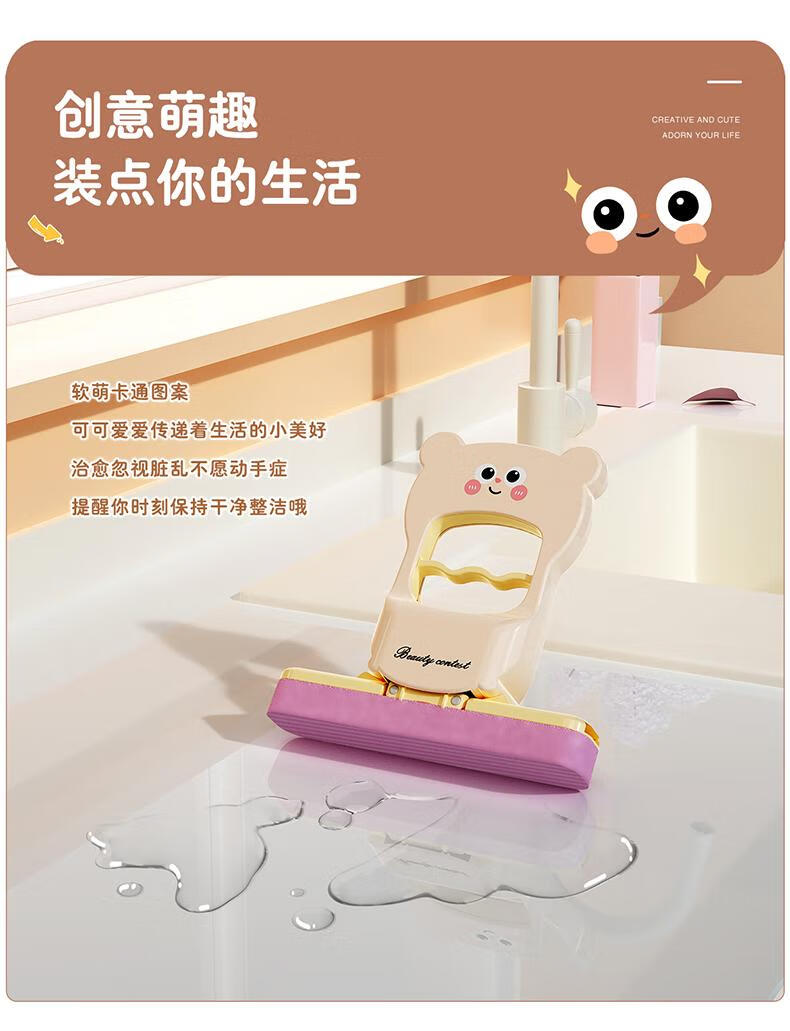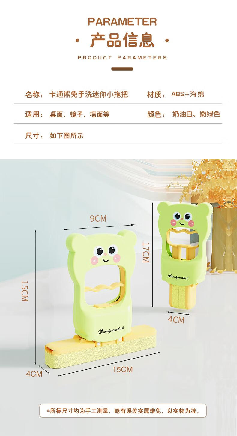 • 商品名称:佳立方卡通熊免手洗迷你小拖把家用卫生间清洁拖布/奶油白+替换胶棉头*4 卡通熊免手洗迷你小拖把/个