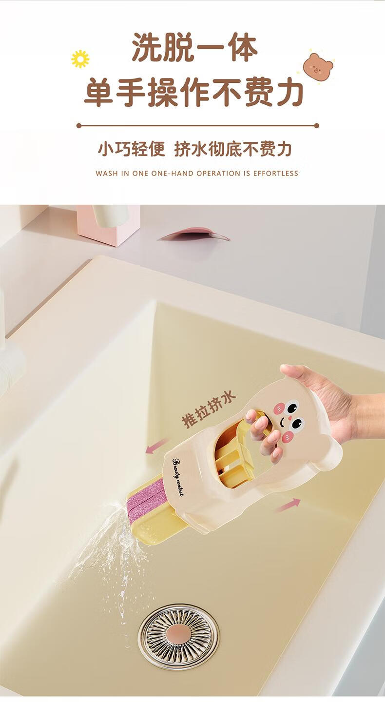 生活日用  > 日用杂货  > 日杂小件  >  佳立方  >  佳立方卡通熊免手洗迷你小拖把家用卫生间清洁拖布/奶油白+替换胶棉头*4 卡通熊免手洗迷你小拖把/个