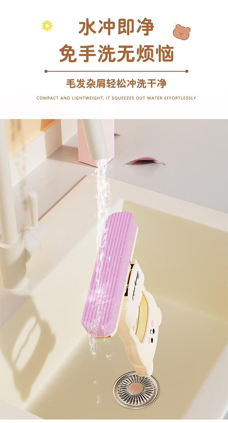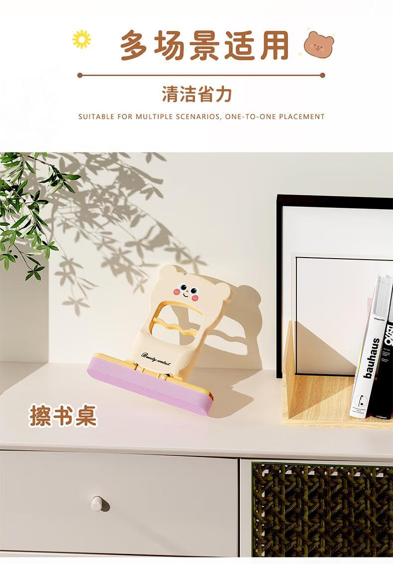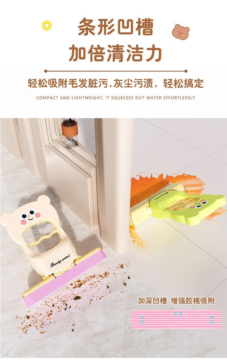 包装清单: 卡通熊免手洗迷你小拖把奶油白*1+替换胶棉头*4